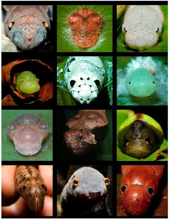 While doing a bit of background reading for this post I came across a fascinating scientific article with the title “A tropical horde of counterfeit predator eyes” by the noted ecologist Dan Janzen. The paper starts with the natural history observation that a remarkable number of caterpillars and pupae in the tropics exhibit different, but essentially similar, eye-like and face-like color patterns.