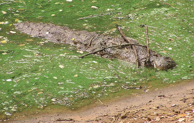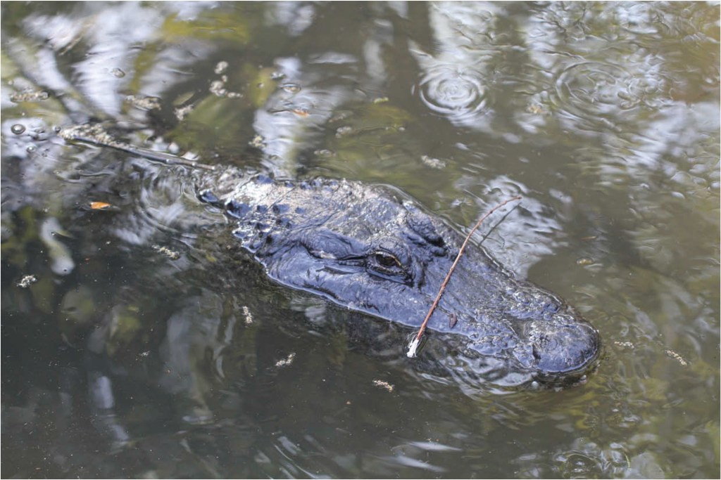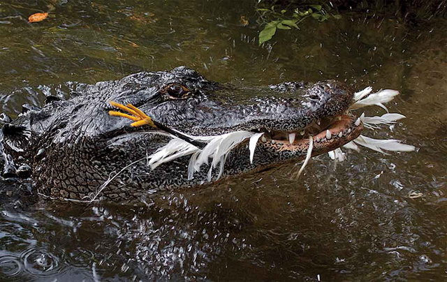Finally, it has been suggested that two species of crocodilians (American Alligator and Mugger Crocodile), that reside in areas with large populations of nesting egrets, place sticks on top of their snout as lures to attract birds in search of nesting material. Although, in American Alligators this interpretation has recently been challenged, as scientists found that the rate of stick-displaying behavior did not differ between alligators found at sites with and without bird rookeries.