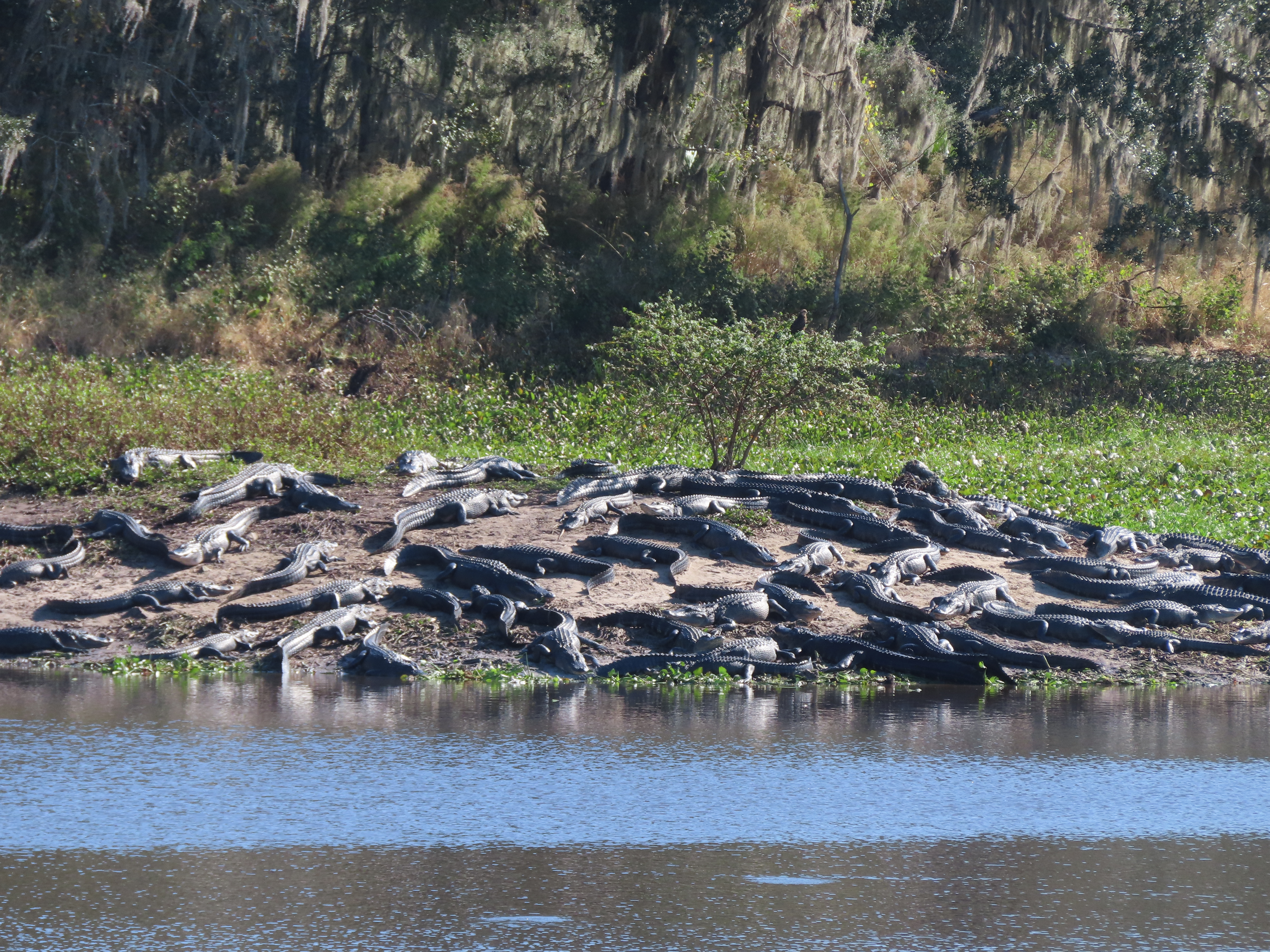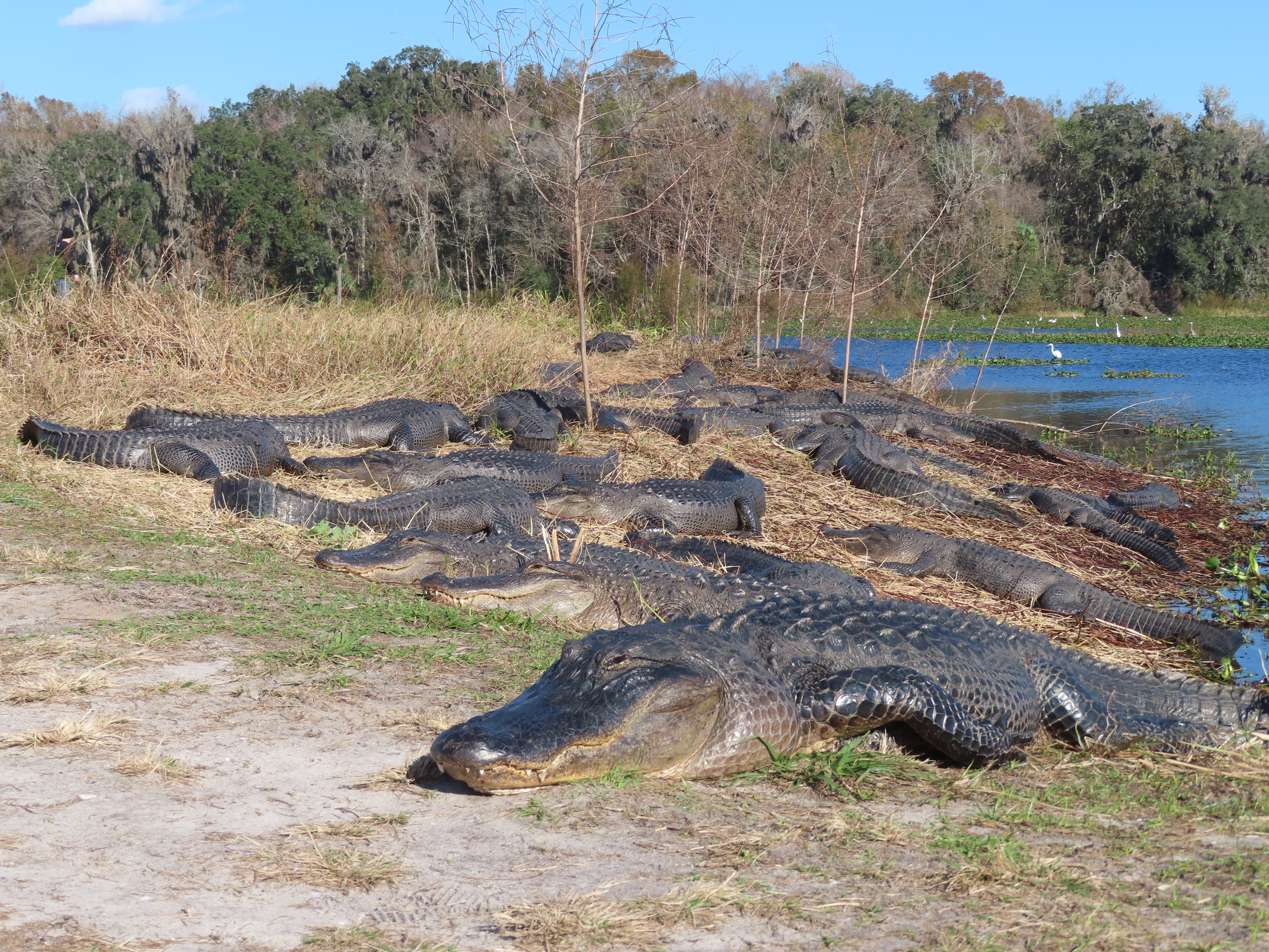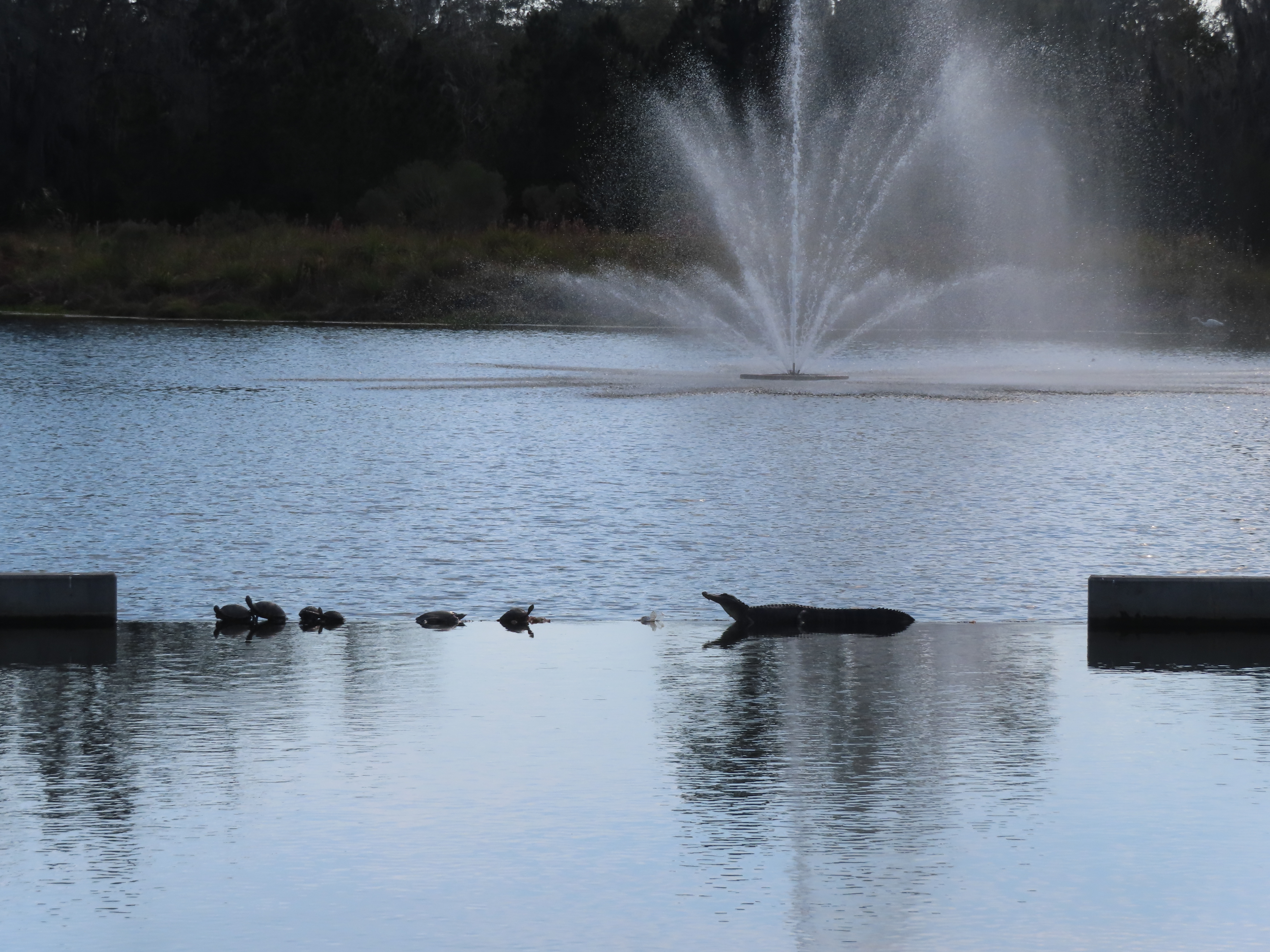 The association between presence and size of alligators and turtle abundance could be formally tested by performing counts of these species in different types of habitats. But in the meantime, I can generate a rule of thumb. A good place to consistently see large alligators in Florida is protected areas such as state and national parks where the largest individuals are offered protection from hunting and trapping. And a good place to easily see abundant water turtles is urban and semi-urban parks where large alligators are unlikely to found due to removal by humans.