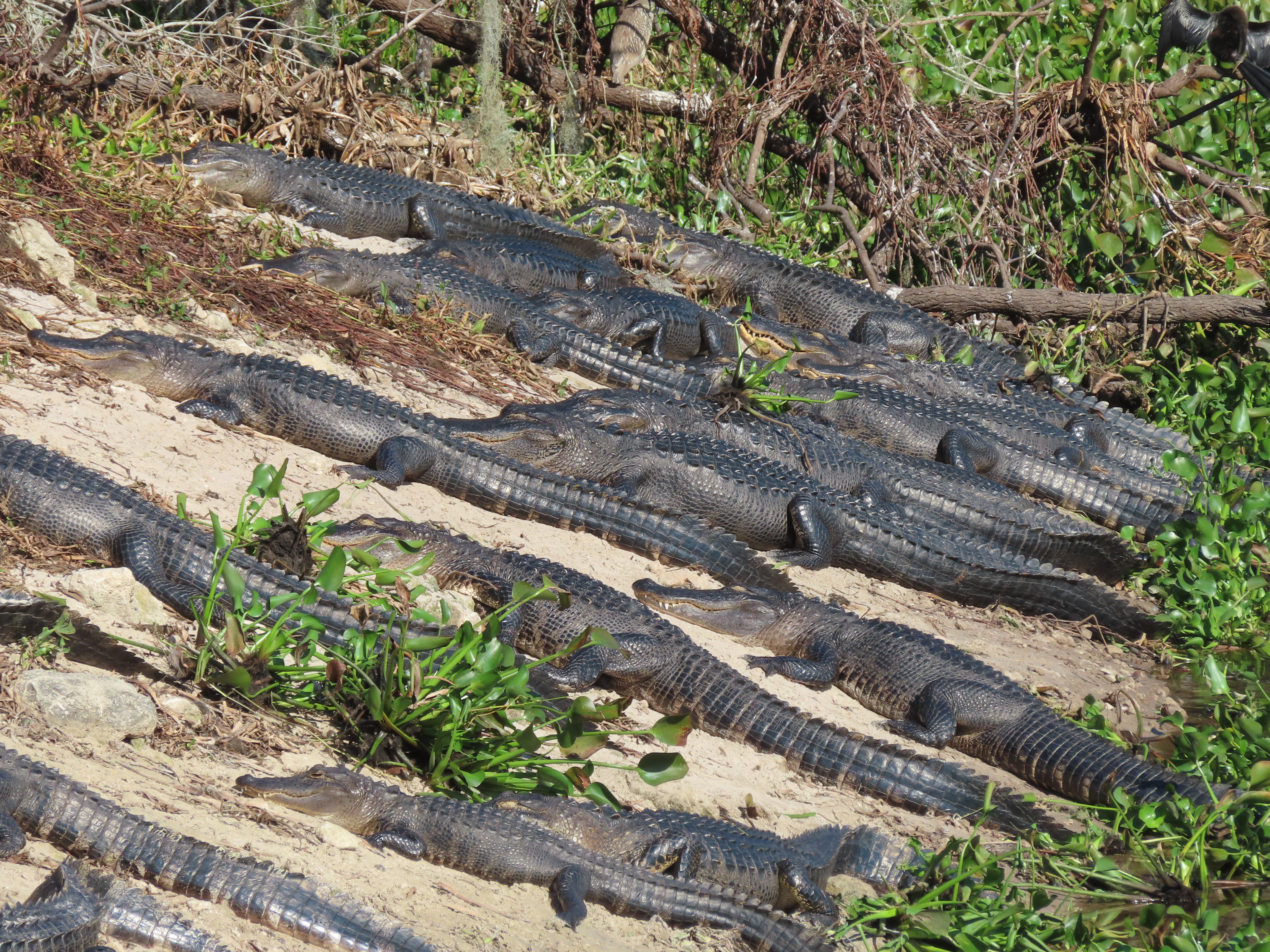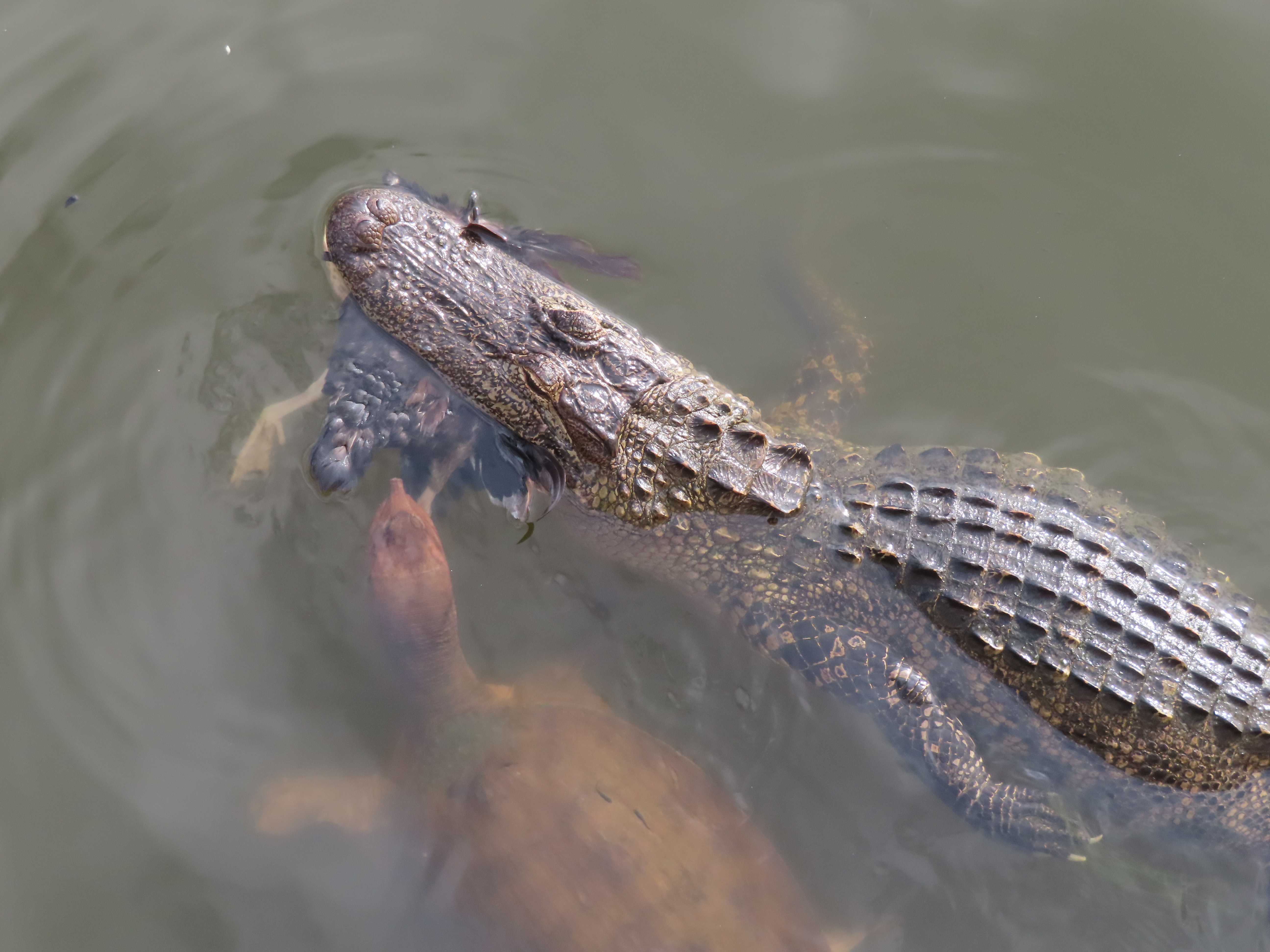1. Interesting observation, but not necessarily an unfathomable conclusion that a collection of large gators could feed upon rather small, even though somewhat protected turtles. I have been in Florida many times, would love to see something like you photographed, many large alligators.