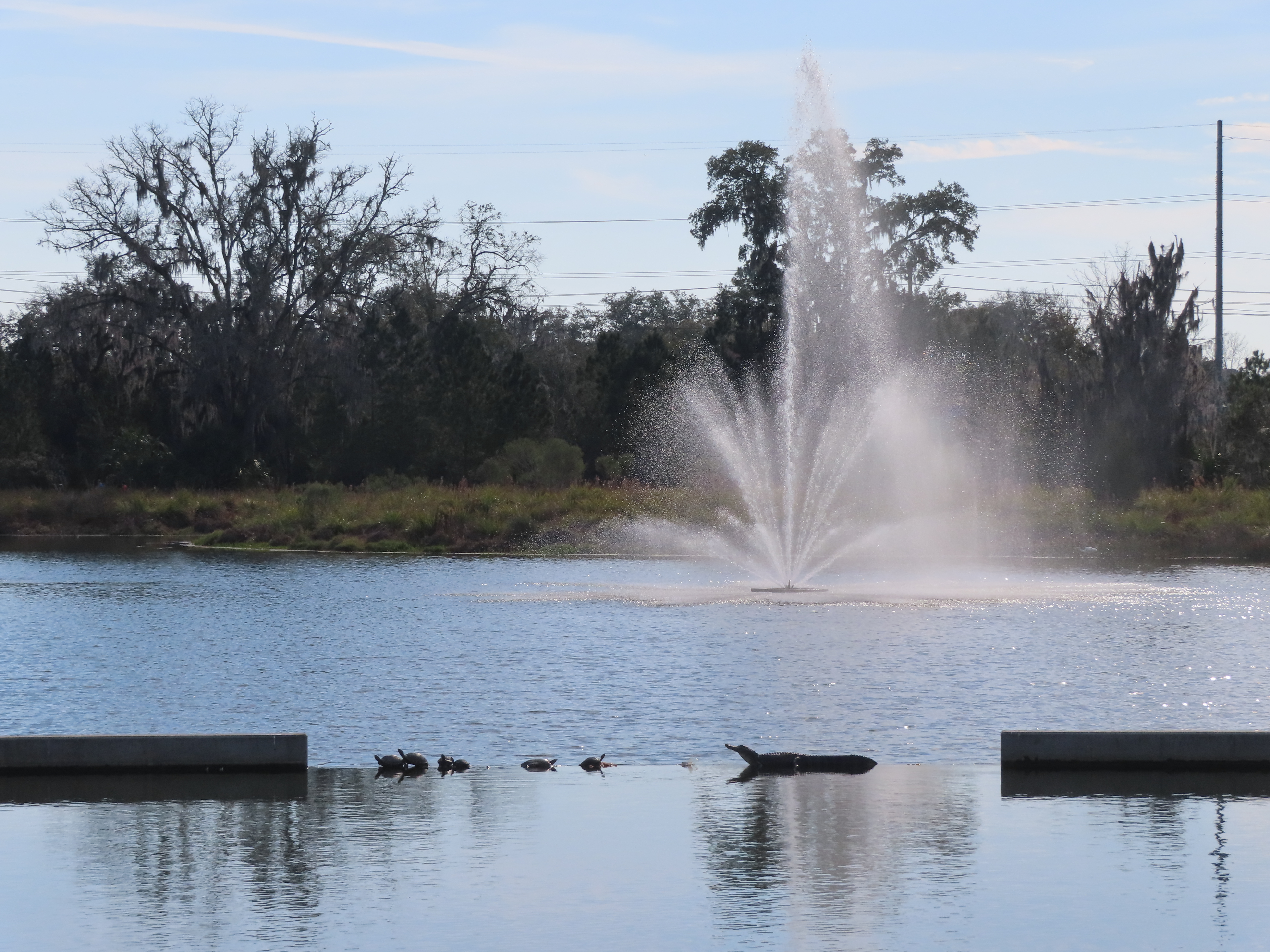 In contrast, Depot Park contains abundant turtles, including several different species, but no large alligators. The largest alligators I have seen in Depot Park are about 6 feet in length. The habitat seems suitable for larger alligators but they simply aren’t present. My hypothesis for why this is the case is that large alligators are removed by state wildlife officials. This is an urban park which is popular with dog walkers and contains a playground for children. The presence of large alligators in an urban park may not be compatible with small children and pets walking near the waters edge.