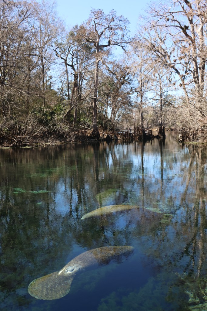 This past week it has been cold in the United States, including most of Florida, and over the weekend I visited a spring not far from Gainesville, Fanning Springs. This is one of Florida’s 33 first-magnitude springs, located in a state park. Here I was able to photograph and snorkel with the approximately 12 manatees that were in the spring on the day I visited (1/26/2025). Below are some of the photos I took of this spring and the manatees which have temporarily taken up residence in this warm water refuge during the winter months.