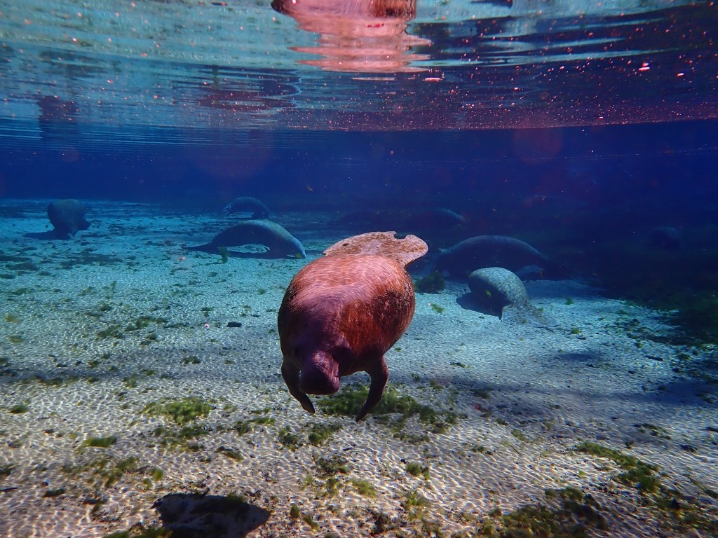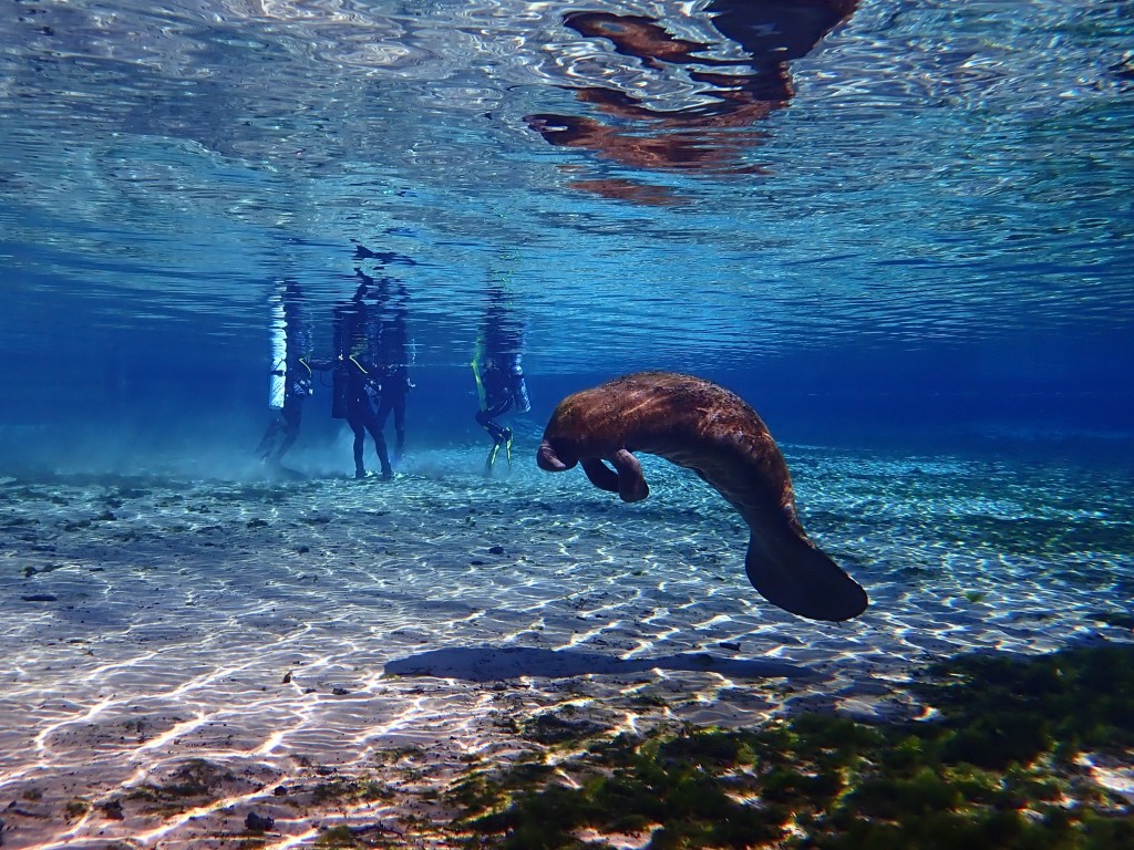Many of these 33 first-magnitude springs are protected in state parks and offer year-round swimming, snorkeling, scuba diving (including in caves), underwater photography, canoeing, kayaking, and tubing in crystal clear water with a constant average temperature of 72 degrees F (22 C). This last point is important. Since the water from these springs comes from deep within the earth, it remains a constant temperature year-round, irrespective of the outside (surface air) temperature. As such, these springs provide warm water refugia for West Indian manatees (Trichechus manatus) during the winter months in north and central Florida.