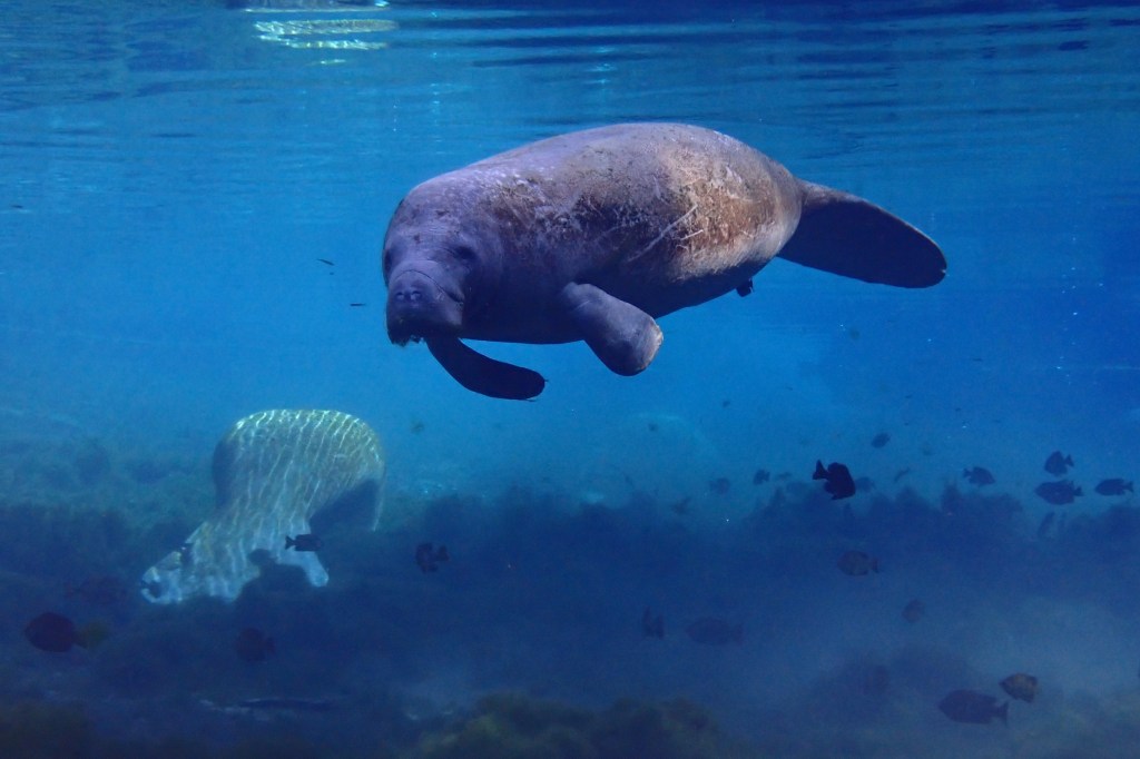 West Indian manatees in Florida are at the northern limits for the species. This is because water temperatures below 68 degrees F (20 C) induce stress and increase mortality. Manatees that seek out warm water refuges during winter are exhibiting behavioral flexibility that allows them to live in areas that they otherwise would not be able to. Humans are of course famous for this. Lacking fur and blubber, we are not naturally cold tolerant. Yet we have managed to colonize all 7 continents due to our behavioral ability to construct shelter, make and wear clothing, and burn fuel to keep warm. Manatees are doing this on a somewhat smaller scale by seeking out those naturally warm-water areas (springs) or artificially warm-water areas (runoff from power plants) and thereby surviving in environments in which they otherwise wouldn’t be able to physiologically tolerate. Finally, manatees must have a very accurate mental map of the landscape, for they are spread across an enormous watery landscape for most of the year, but reliably find their way back to these few and far-between warm-water outposts when it is required for survival.