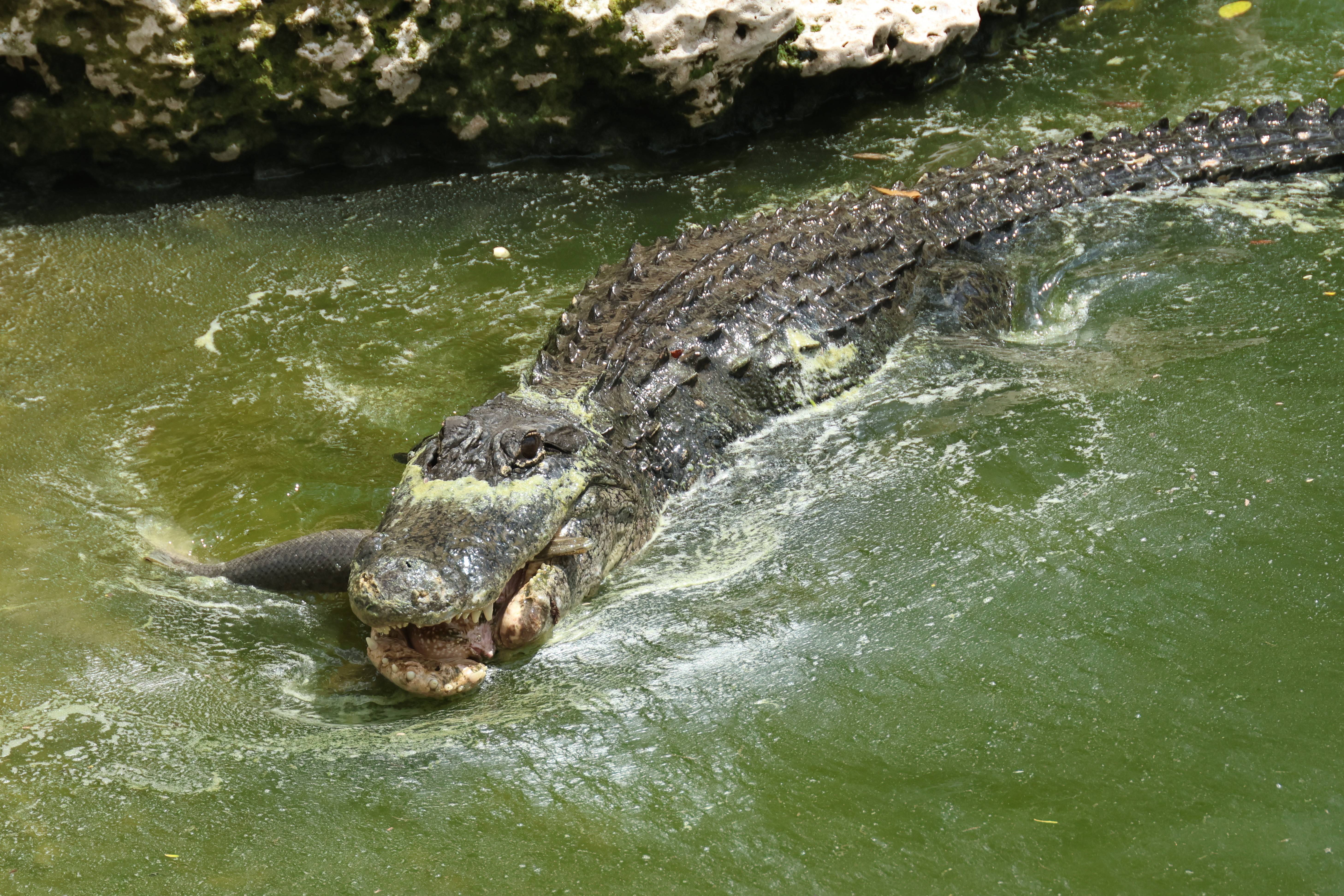 I next visited the Oasis visitor center of Big Cypress National Preserve, which has a small boardwalk overlooking a deep section of canal. This was full of alligators and fish. I have visited this same spot in past trips and recognized one of the alligators by its damaged lower jaw. It was interesting to see that this alligator is still alive and well (and on this particular occasion eating a gar).