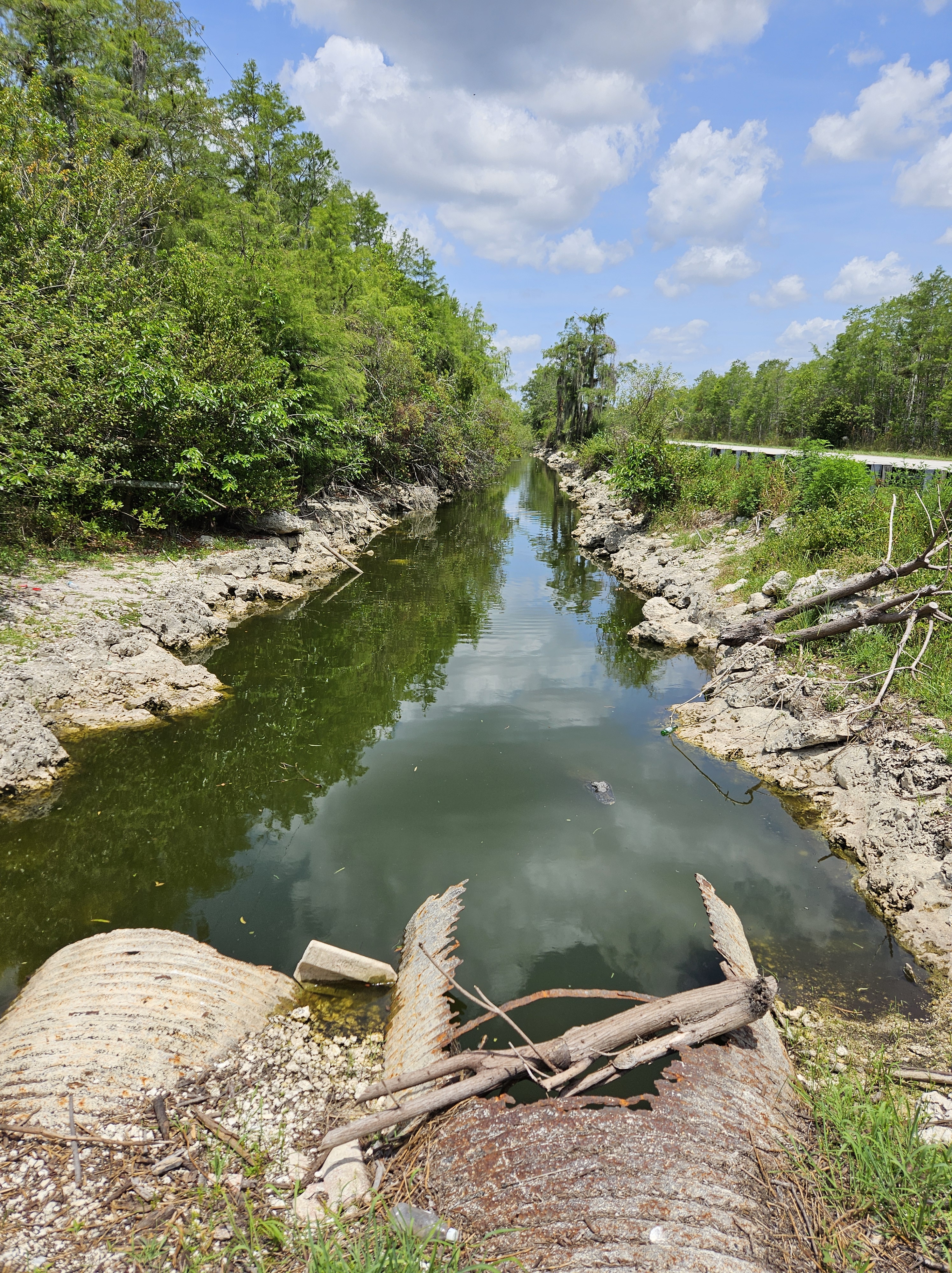 The canal along the Tamiami Trail (highway) contains permanent water even during the peak of the dry season. During this time, fish become concentrated and easier to catch. Click to enlarge and open gallery view.