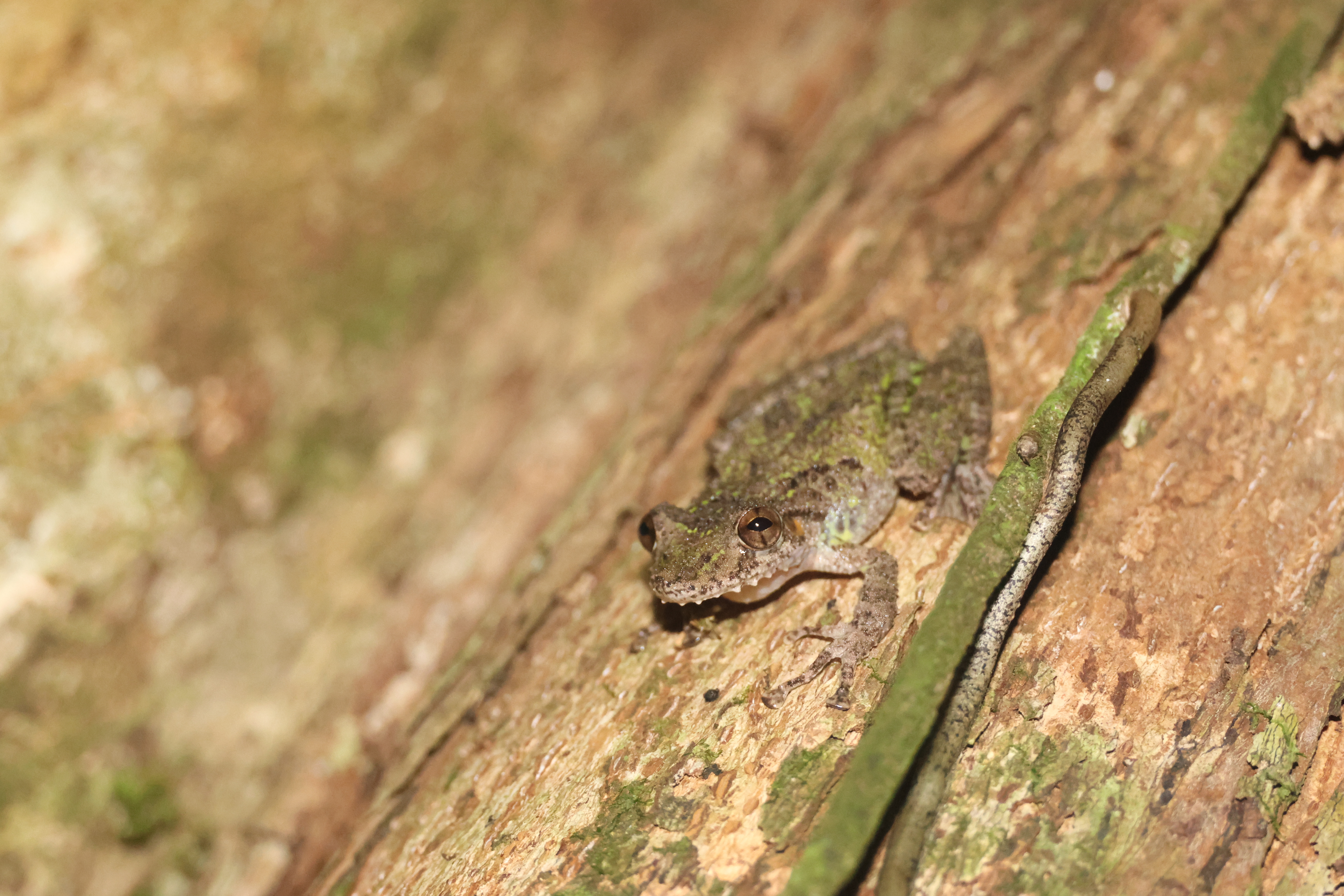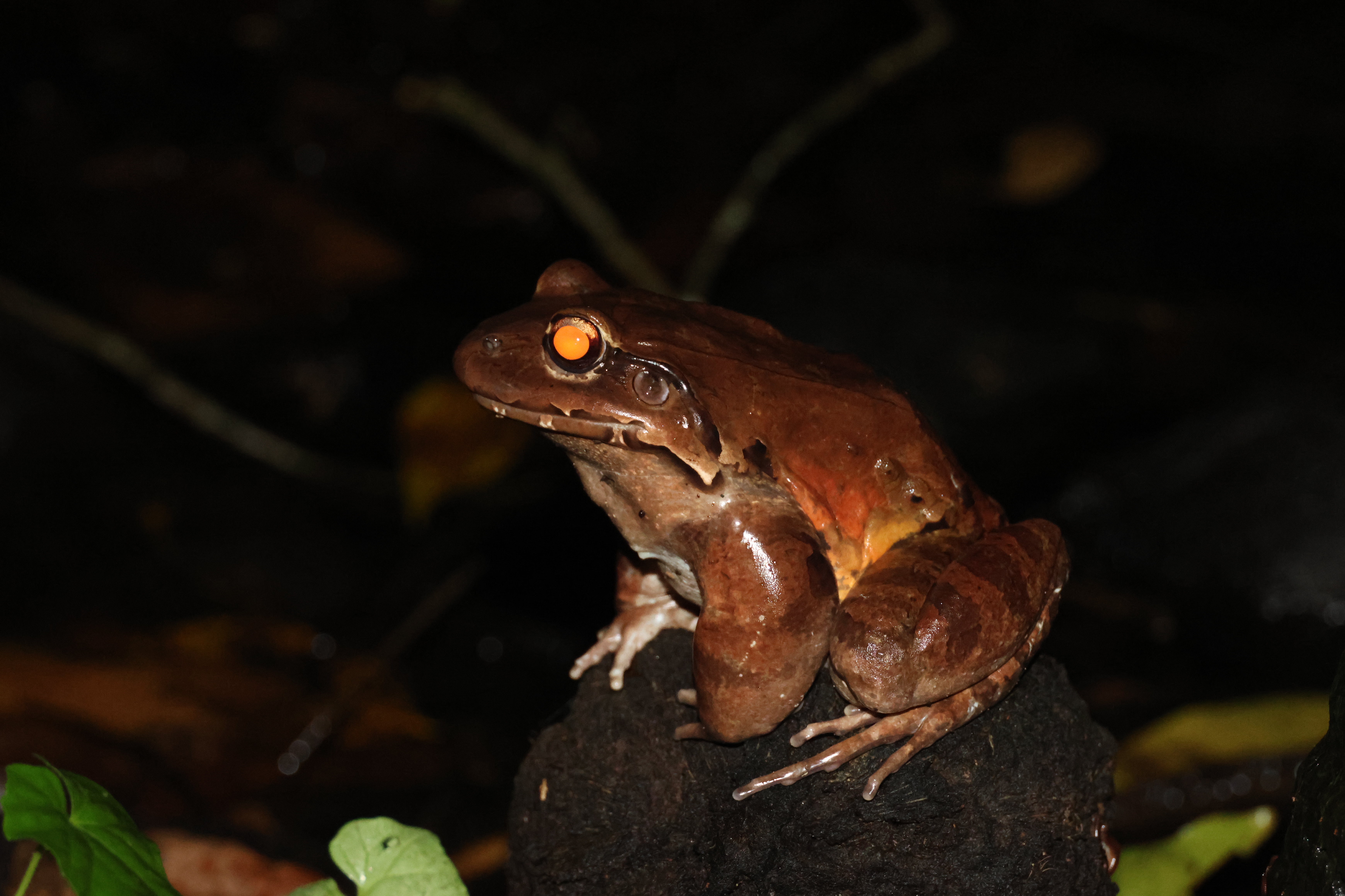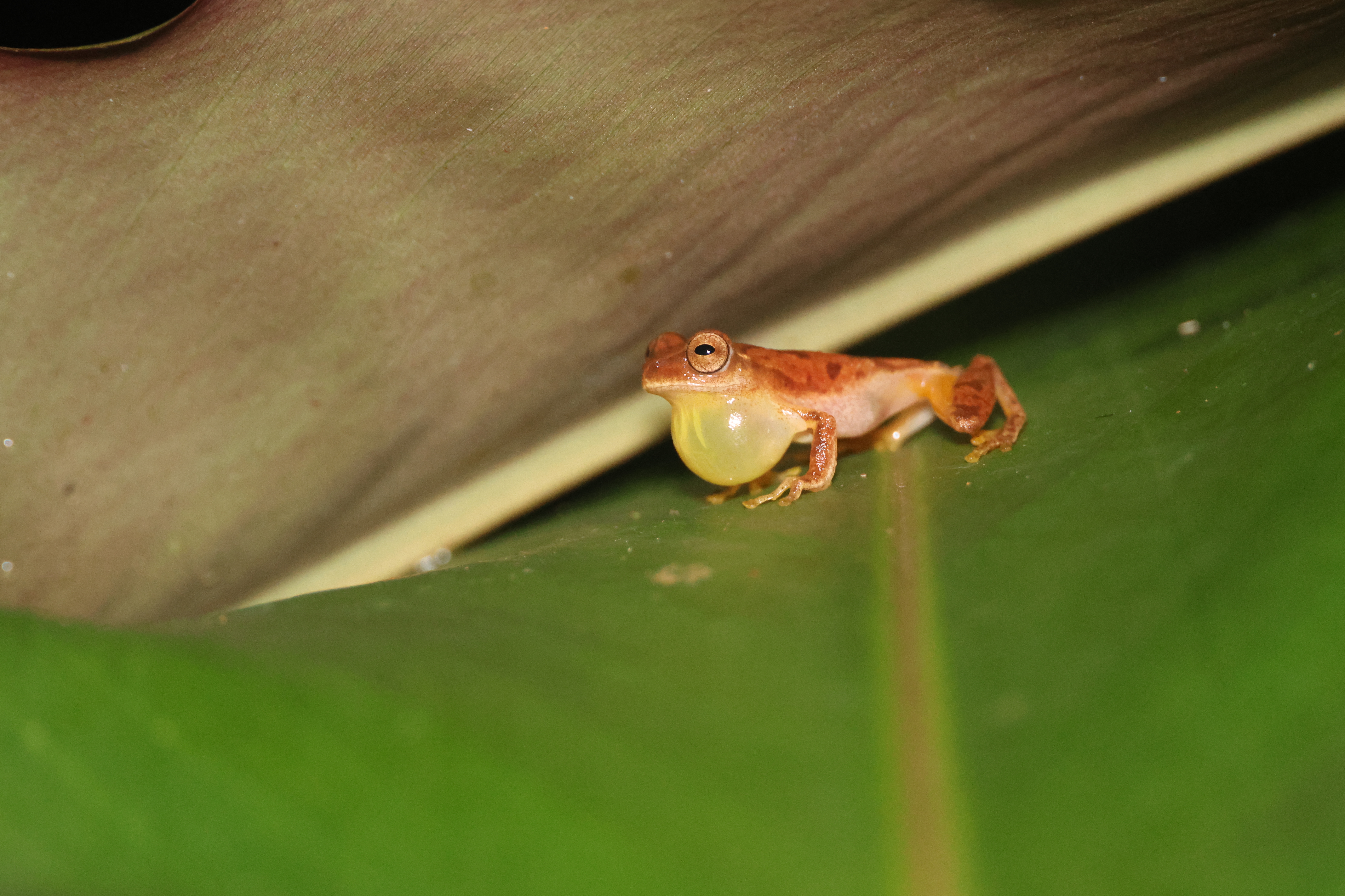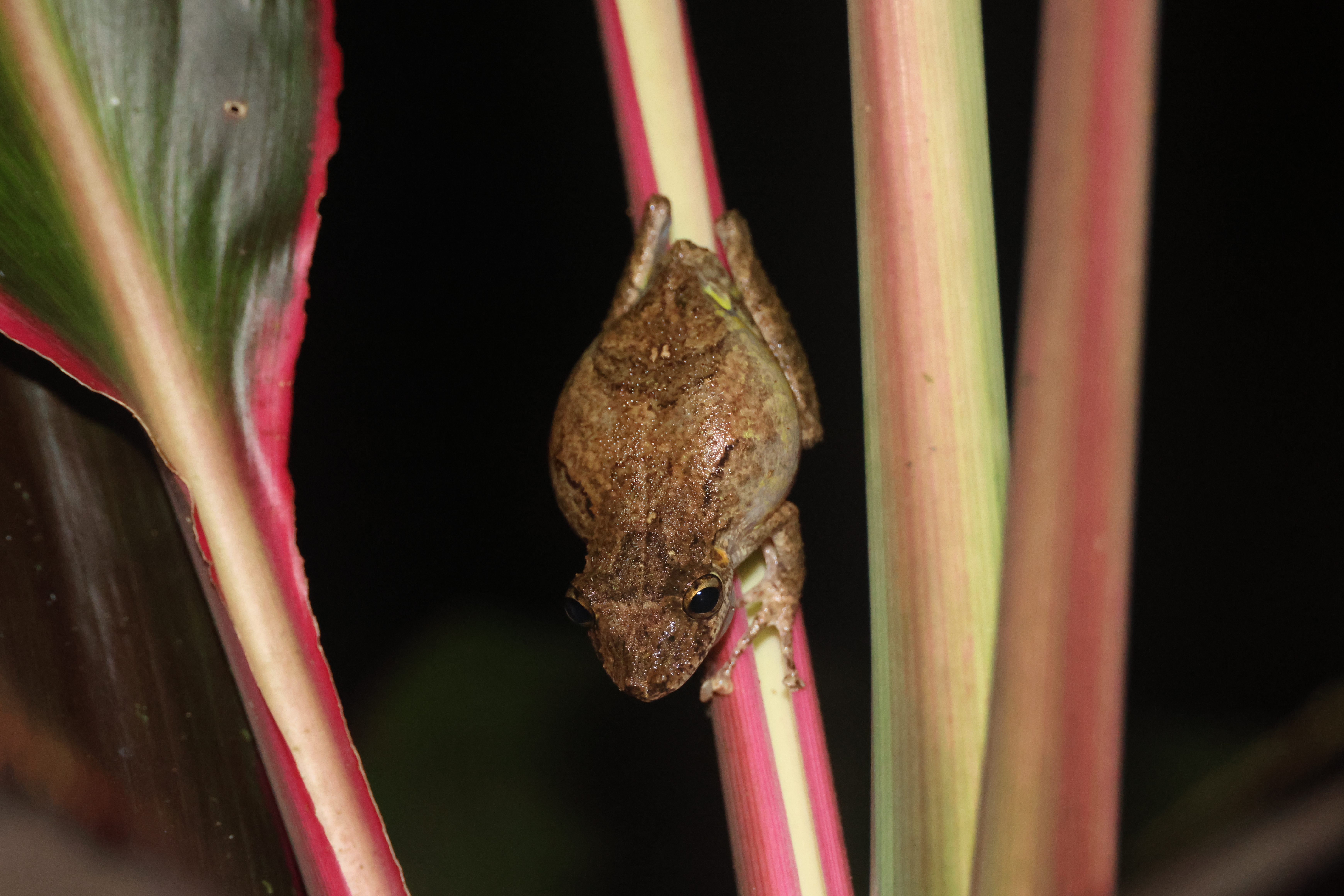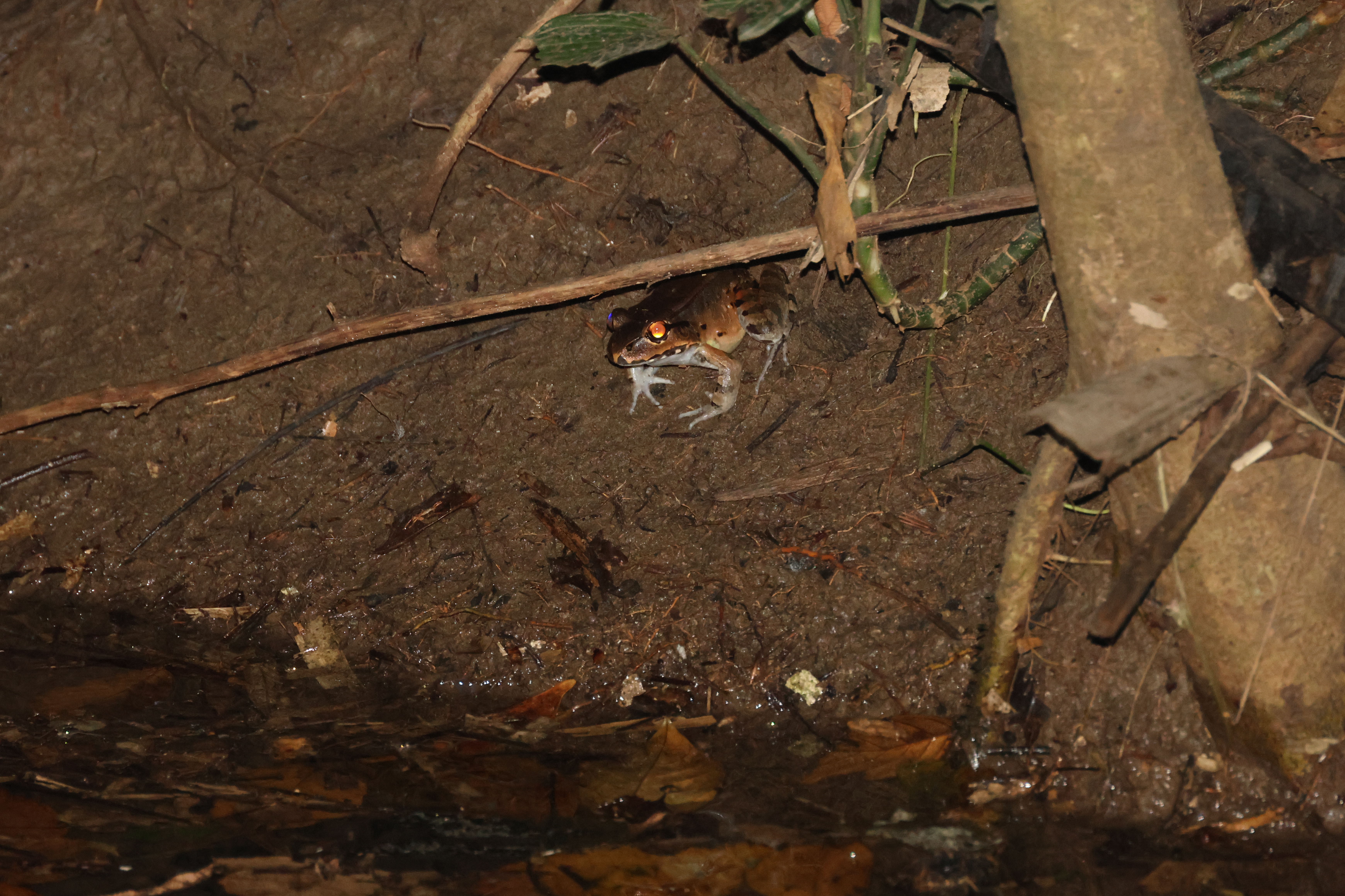 Conducting fieldwork (in rivers) during the rainy season made for some challenges as the water levels were higher, but one of the benefits of visiting at this time of year was an increase in the visibility and activity of frogs. Frogs become active after rain, and at night they tend to congregate and call around all sorts of water bodies. Over the two-week trip, I photographed over 15 species of frogs, including the iconic Red-eyed tree frog. What follows is a photo documentation of the different frog species observed and some natural history information about them.