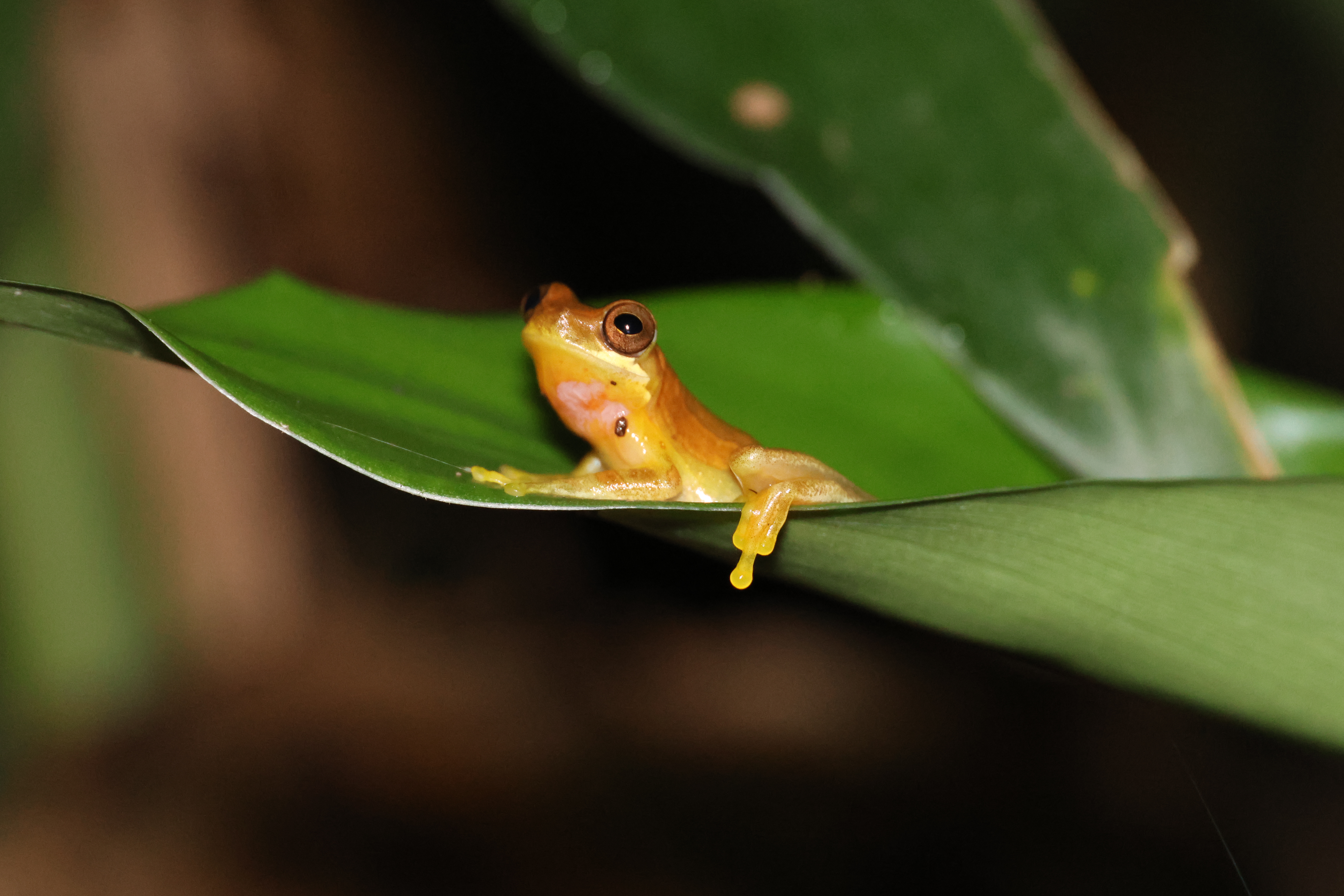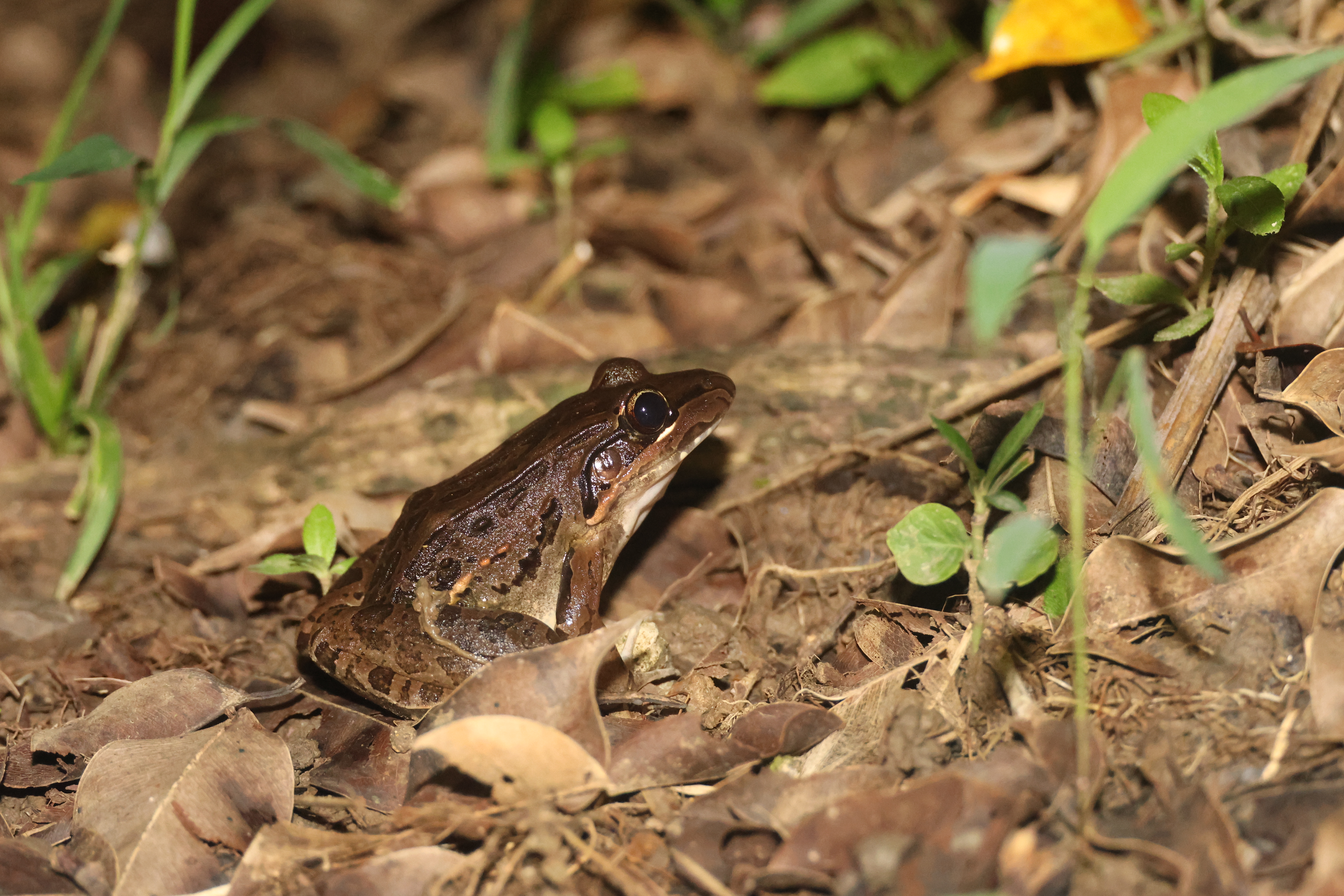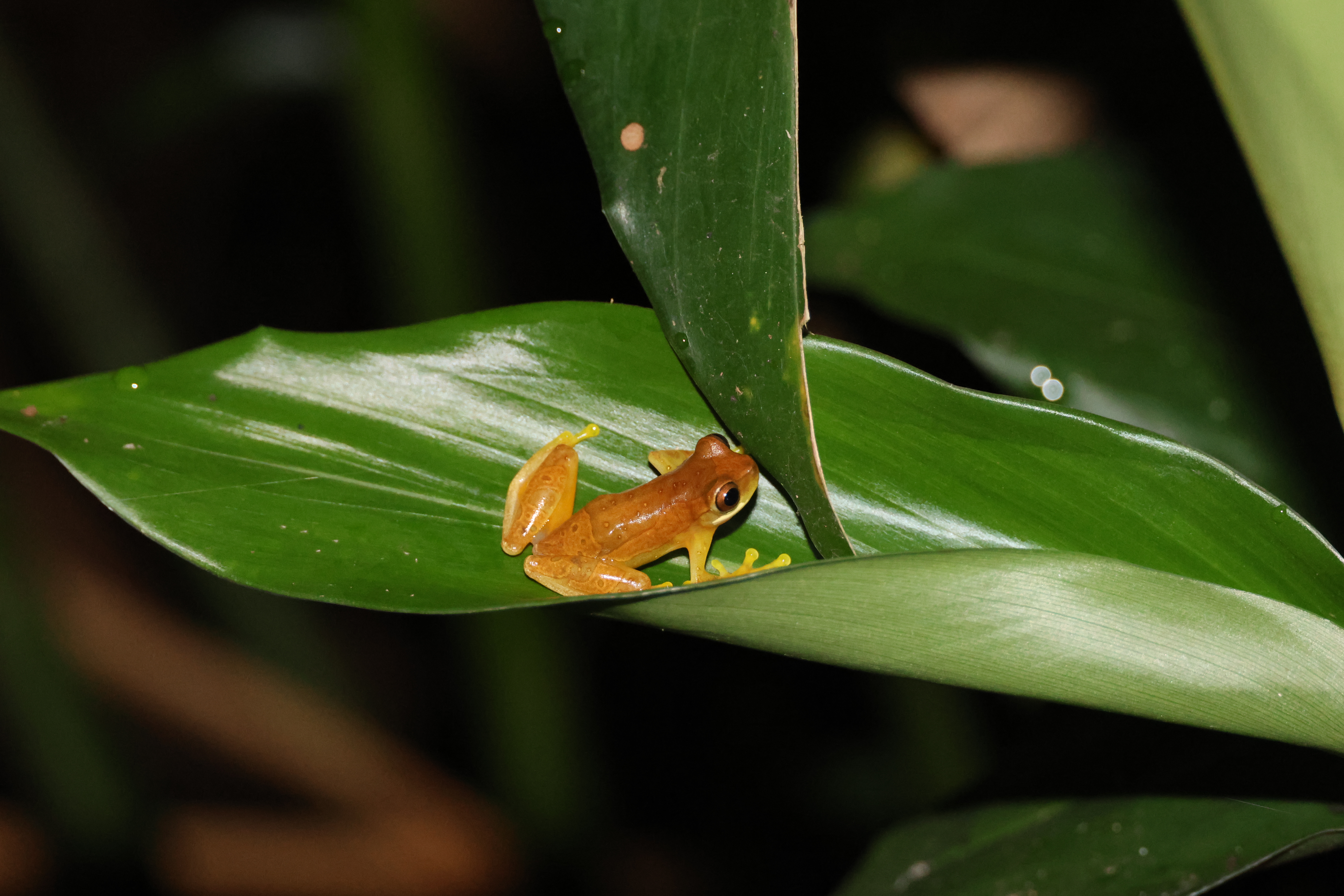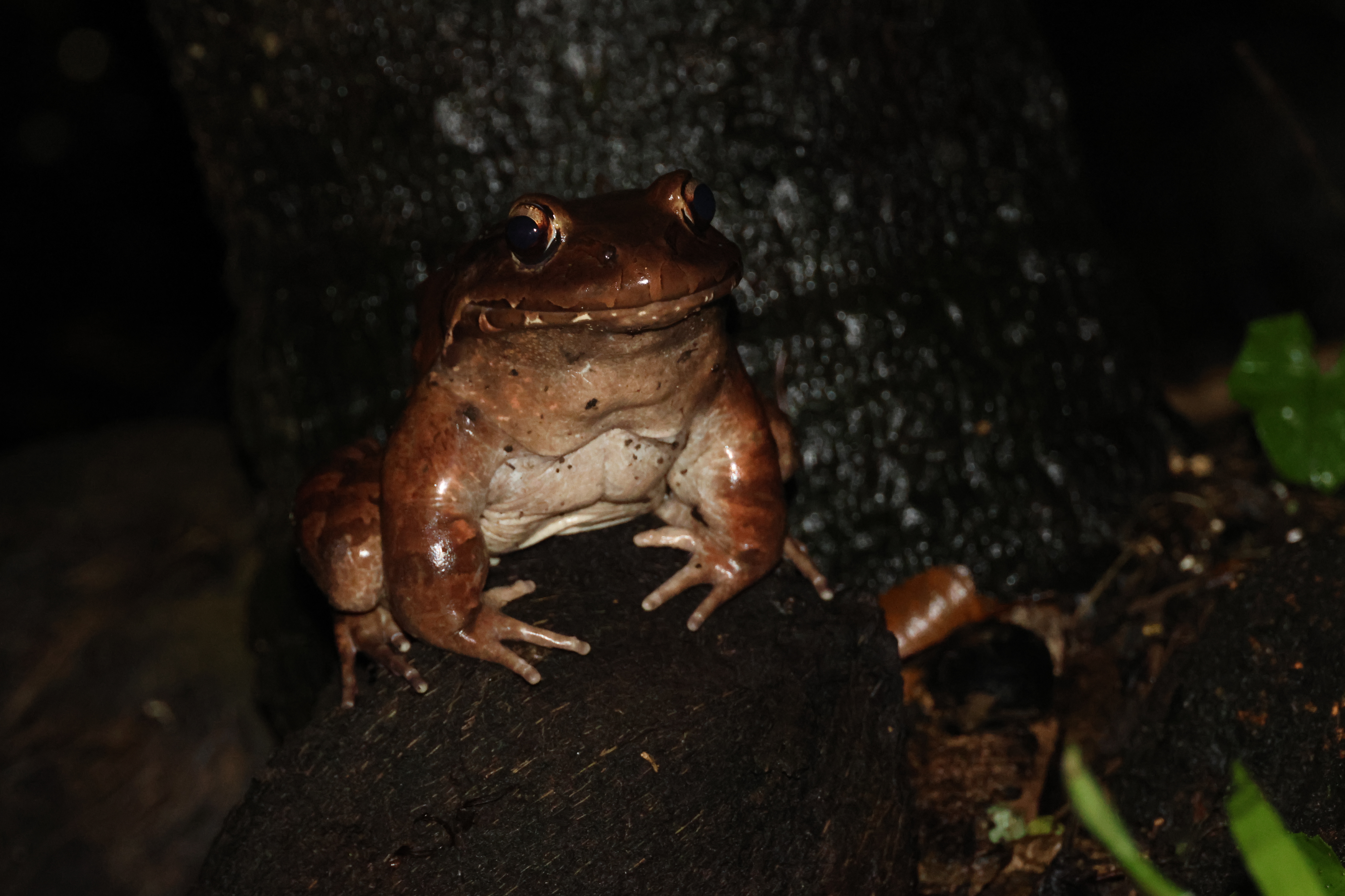 Conducting fieldwork (in rivers) during the rainy season made for some challenges as the water levels were higher, but one of the benefits of visiting at this time of year was an increase in the visibility and activity of frogs. Frogs become active after rain, and at night they tend to congregate and call around all sorts of water bodies. Over the two-week trip, I photographed over 15 species of frogs, including the iconic Red-eyed tree frog. What follows is a photo documentation of the different frog species observed and some natural history information about them.
