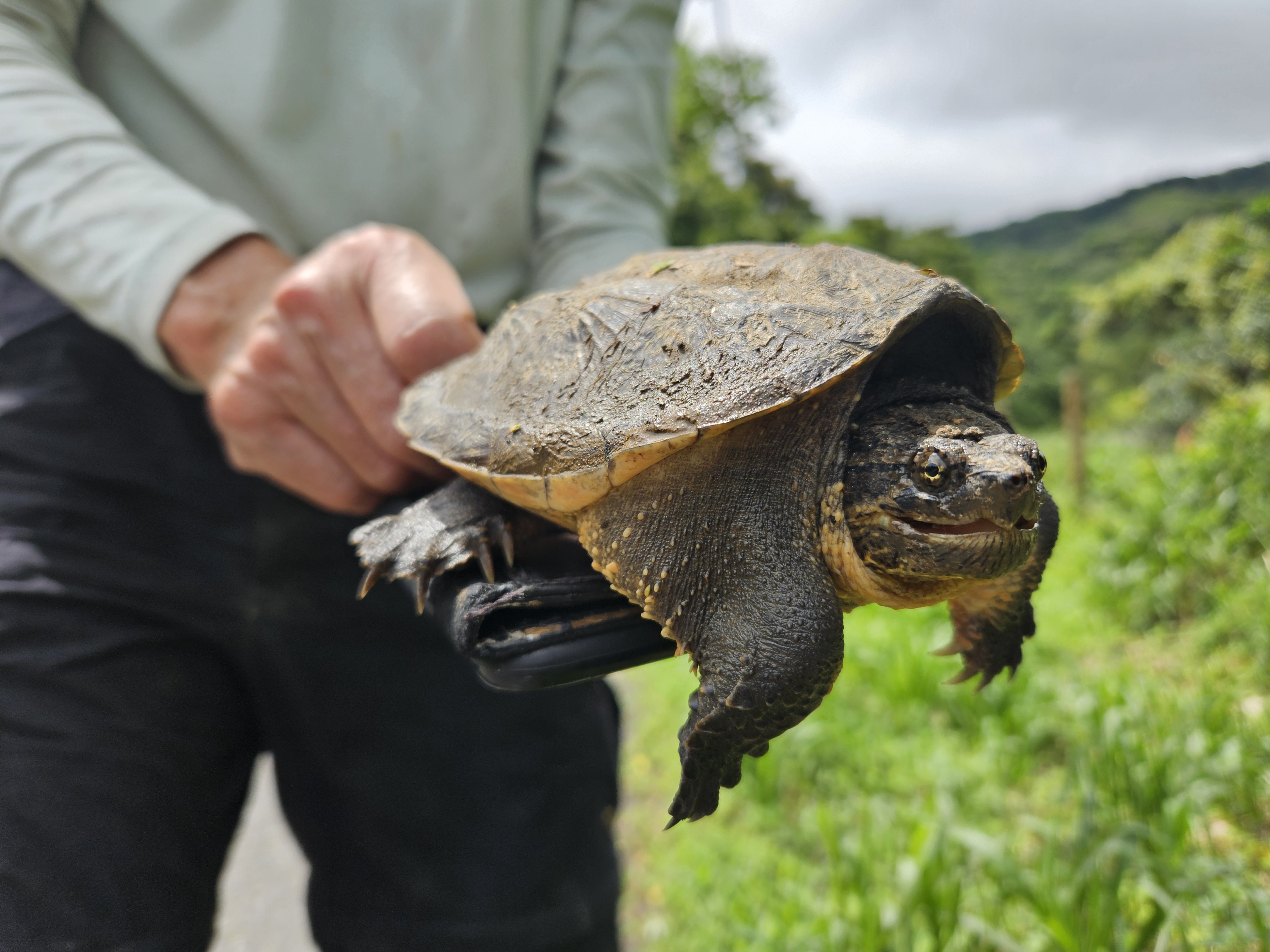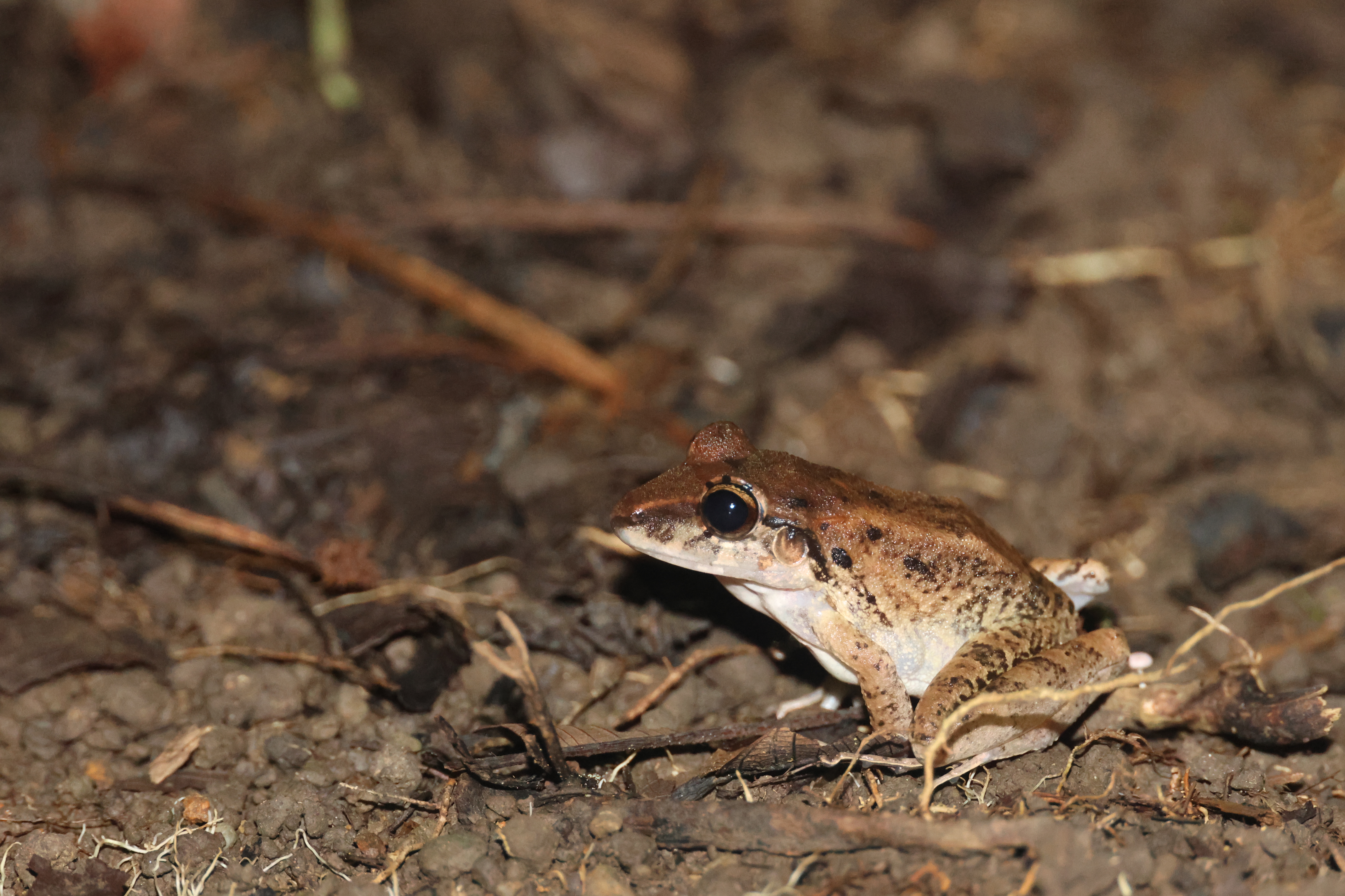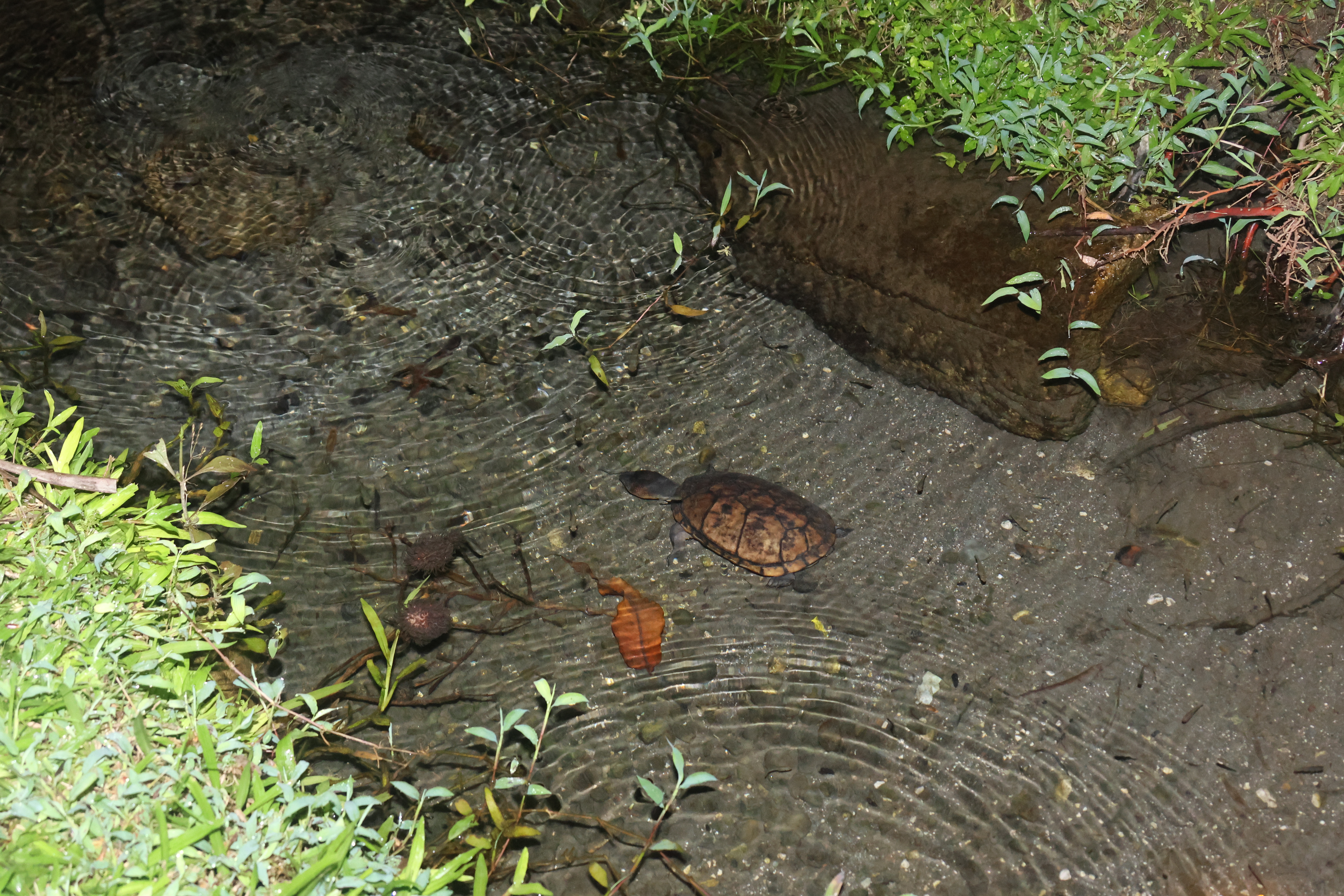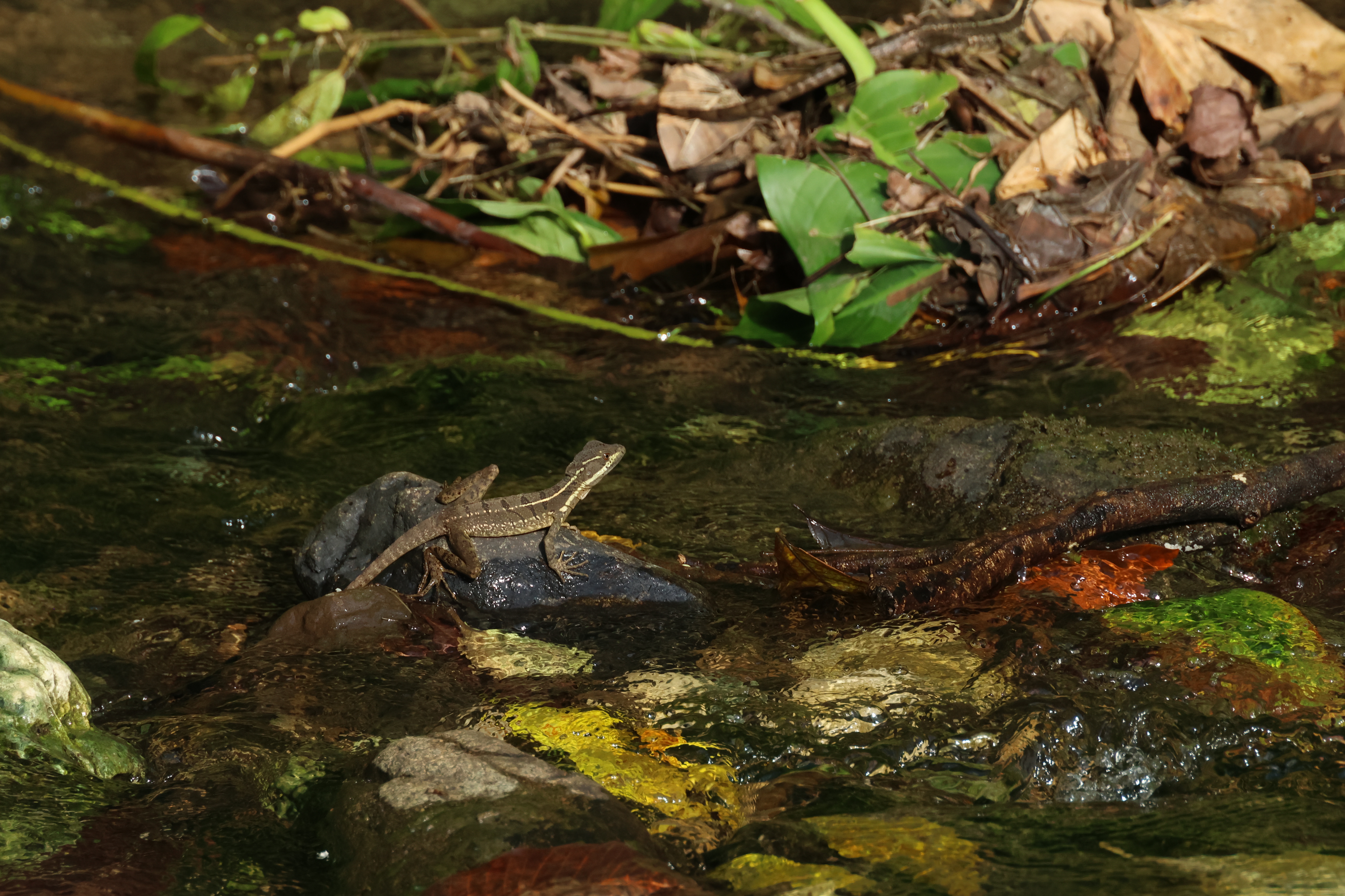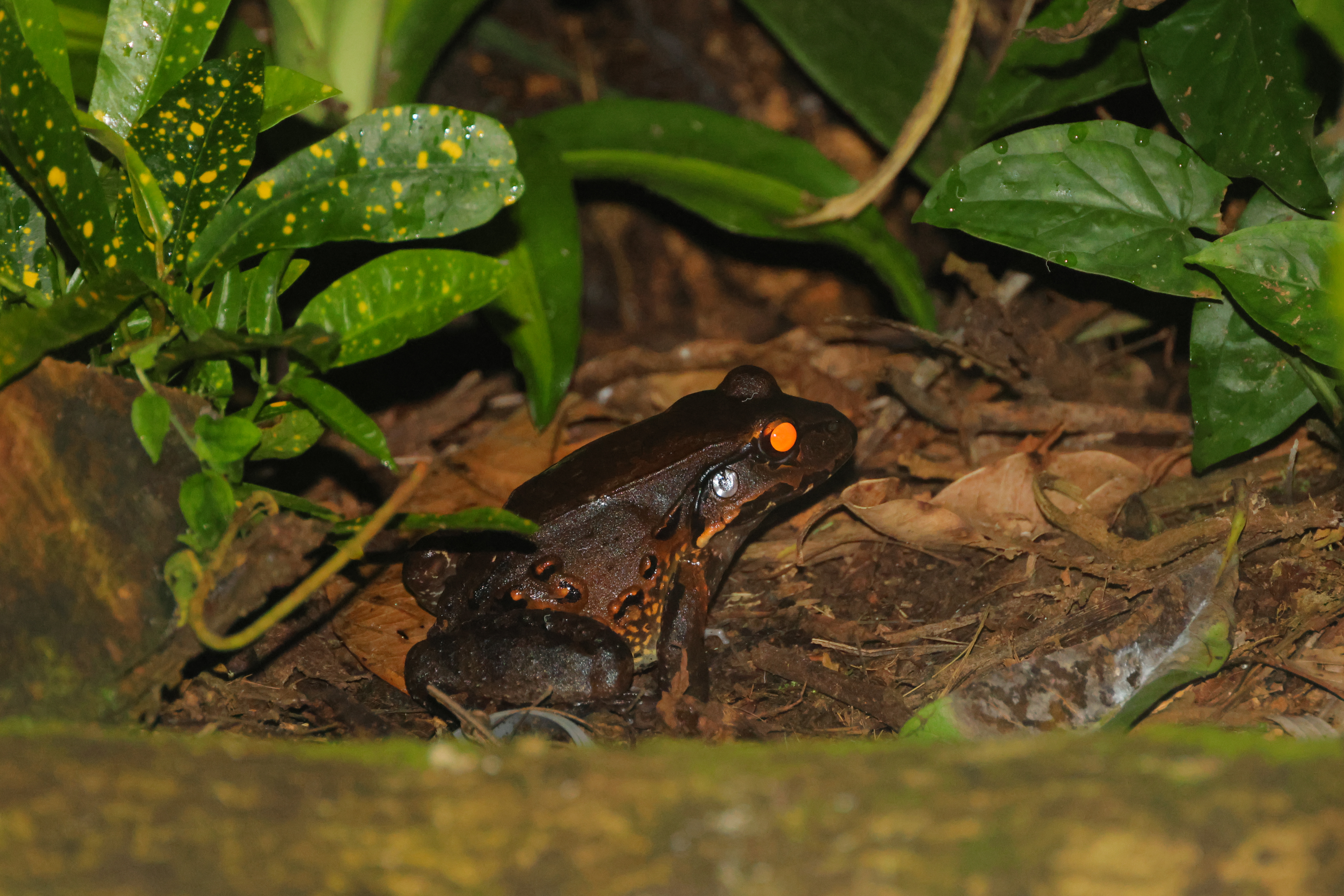 Conducting fieldwork (in rivers) during the rainy season made for some challenges as the water levels were higher, but one of the benefits of visiting at this time of year was an increase in the visibility and activity of frogs. Frogs become active after rain, and at night they tend to congregate and call around all sorts of water bodies. Over the two-week trip, I photographed over 15 species of frogs, including the iconic Red-eyed tree frog. What follows is a photo documentation of the different frog species observed and some natural history information about them.