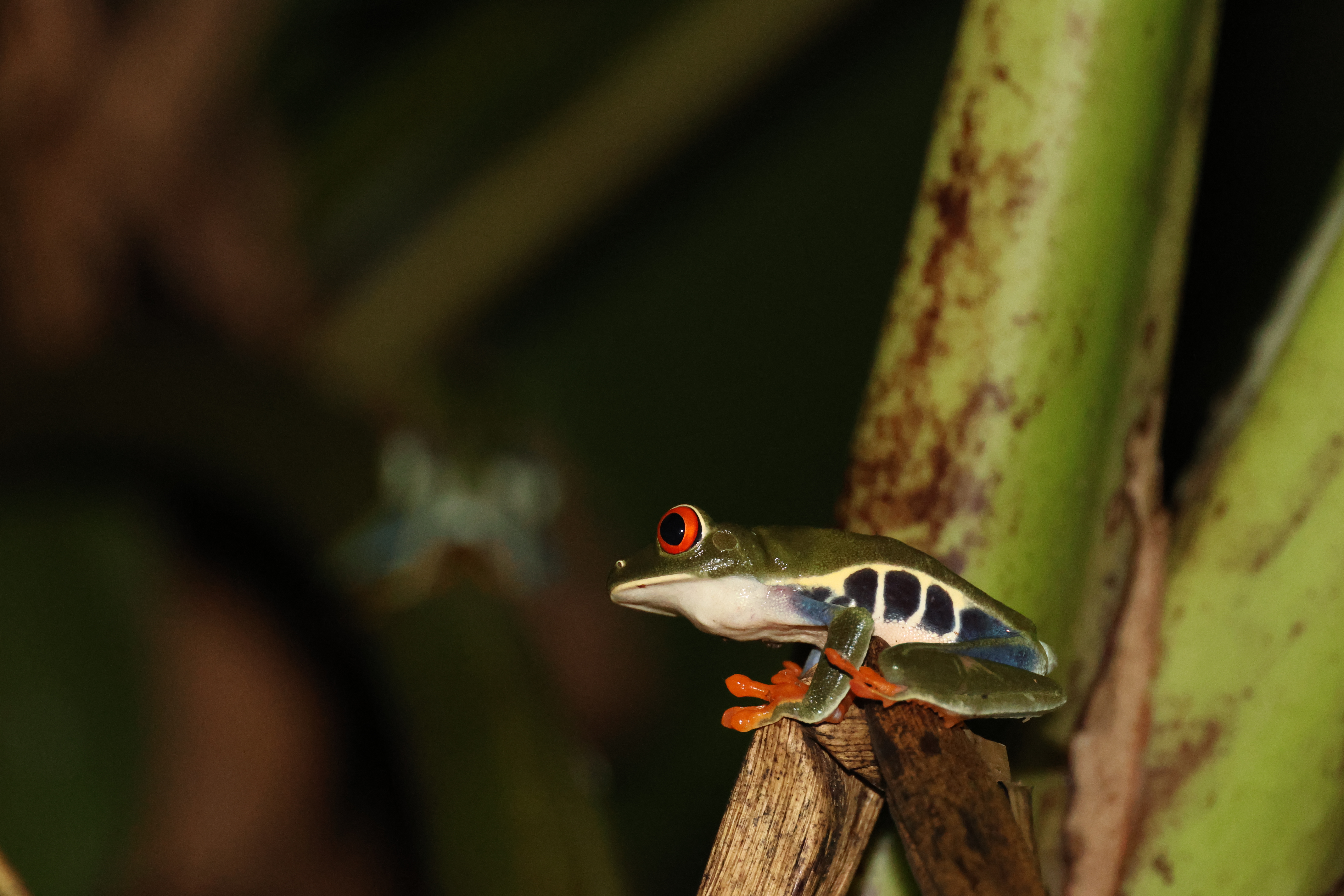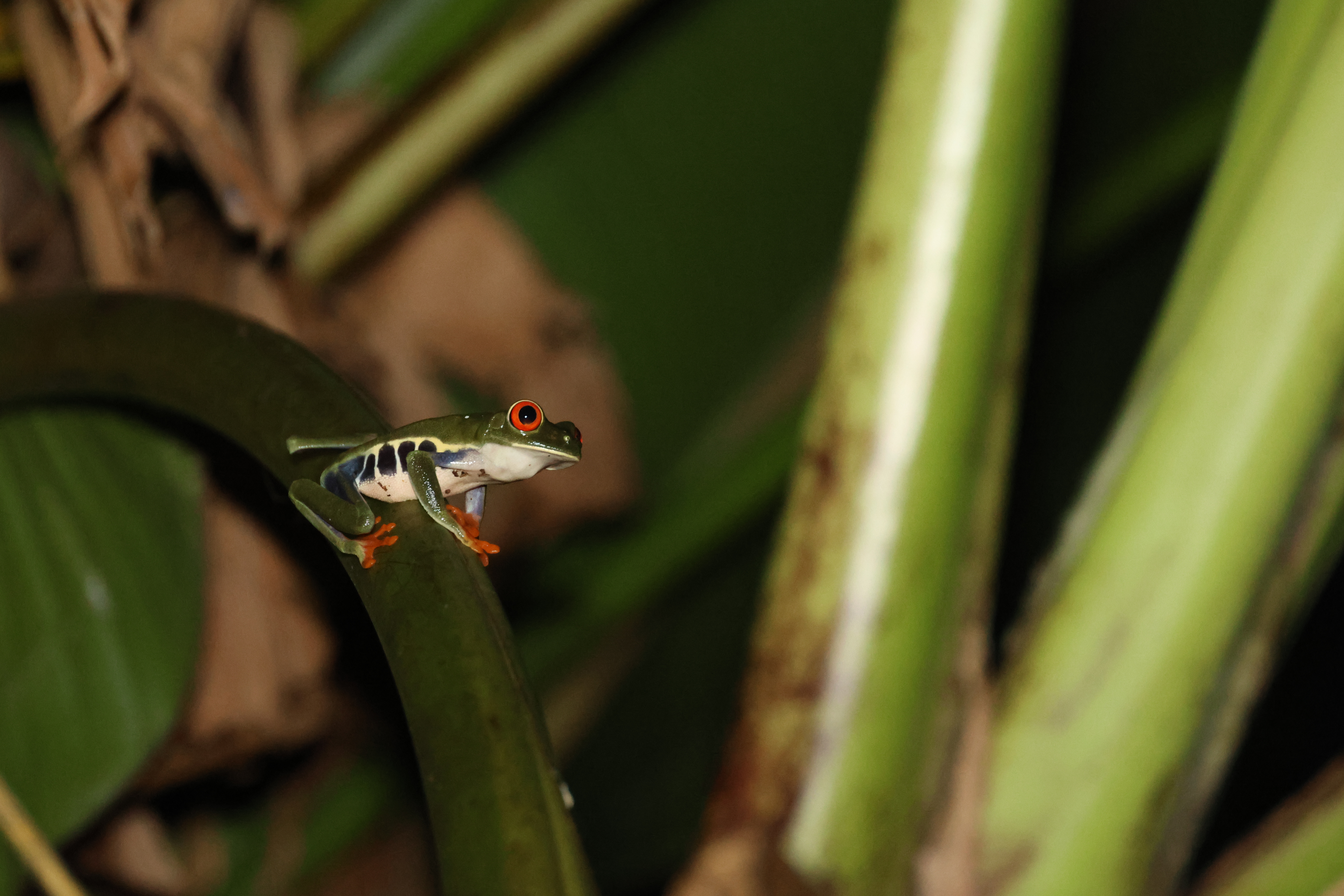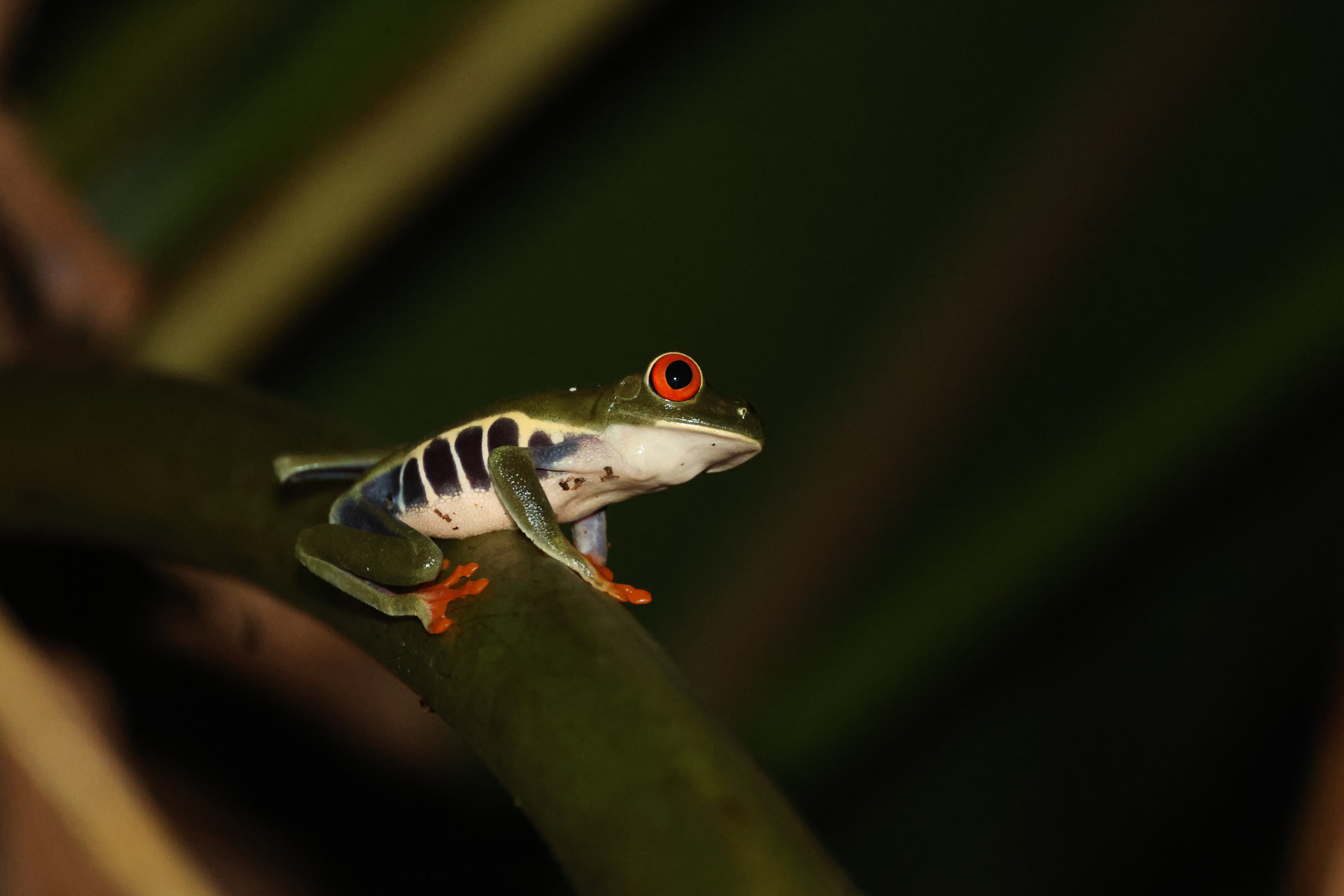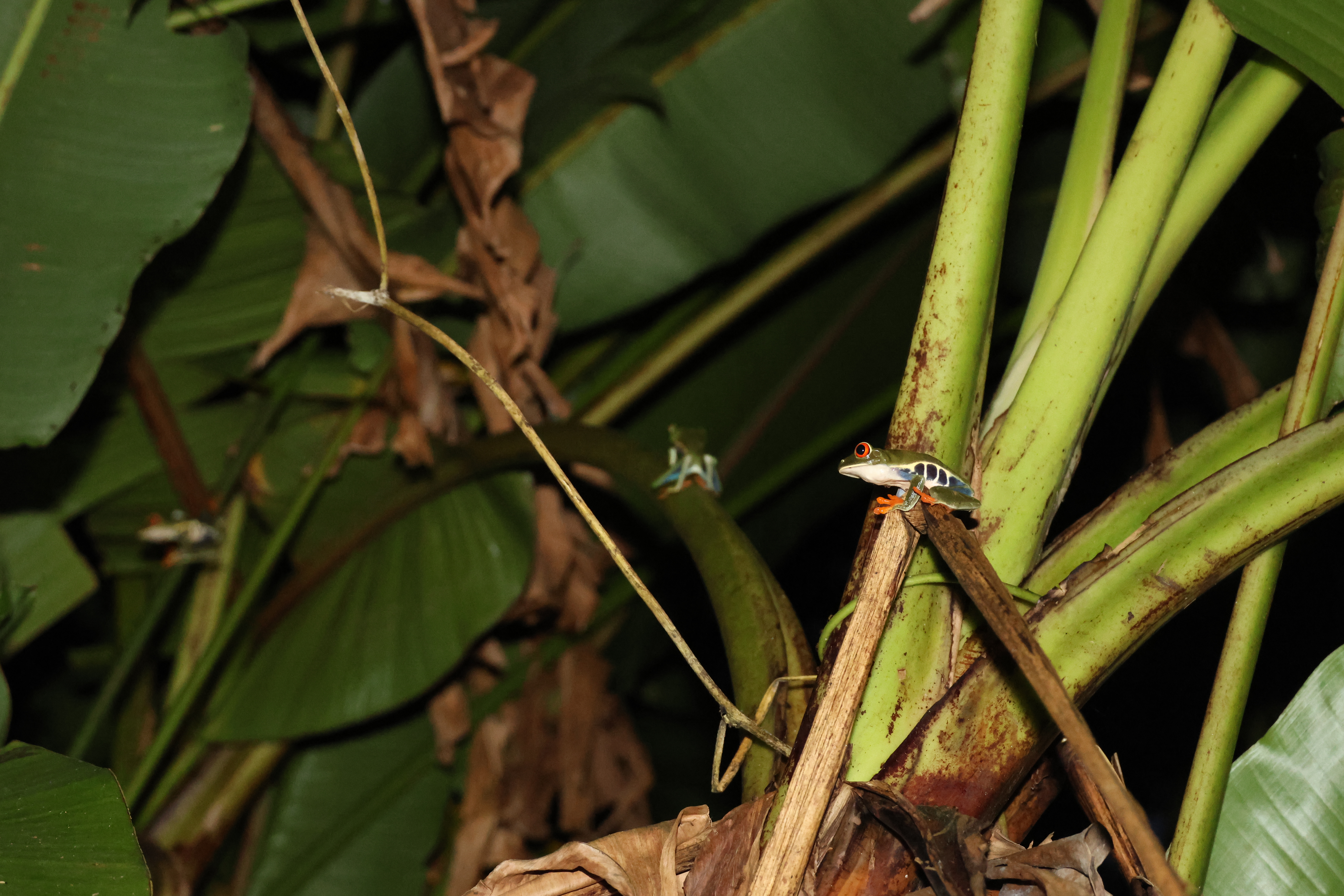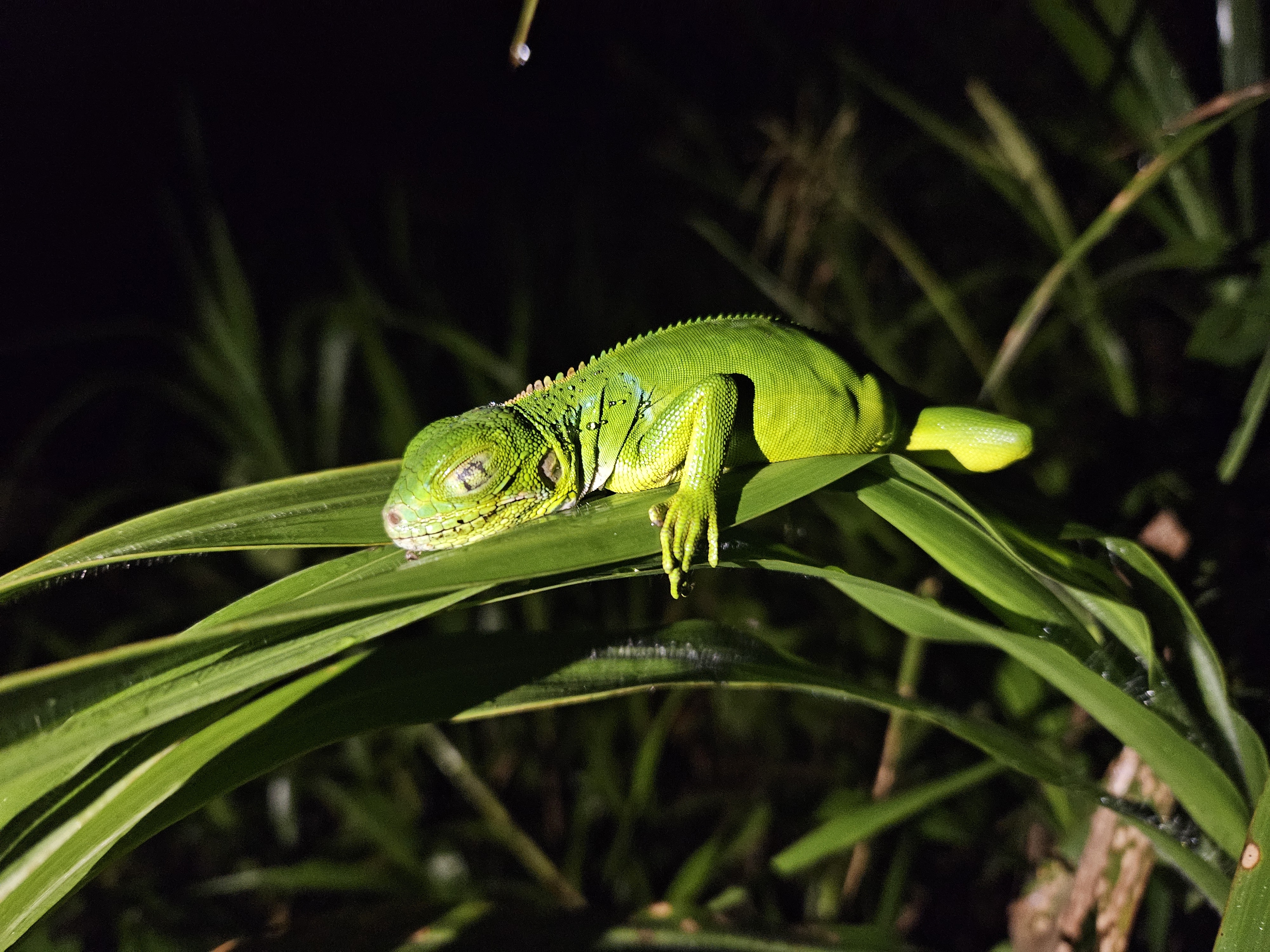 All the frog photos shown above were taken at night, save those of the Strawberry poison frog, and about half of the reptile photos were as well. If you want to see frogs (particularly in the tropics) your best bet is to explore at night, as most species are nocturnal. A good headlamp is important, and one can maximize ones chances by searching around waterbodies, particularly after it has rained.