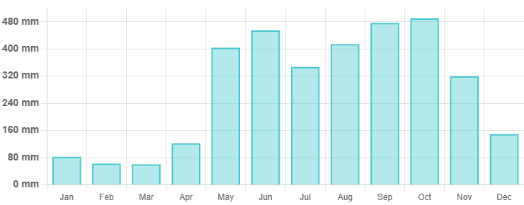 Monthly precipitation levels (top graph) and average number of days each month with precipitation (bottom graph) in San José, Costa Rica. In previous trips, I visited Costa Rica in the months of February, March, and April (i.e. the dry season), but this trip was in late July and early August (the rainy season). Graph credit: https://weather-and-climate.com/average-monthly-precipitation-Rainfall,san-jose,Costa-Rica