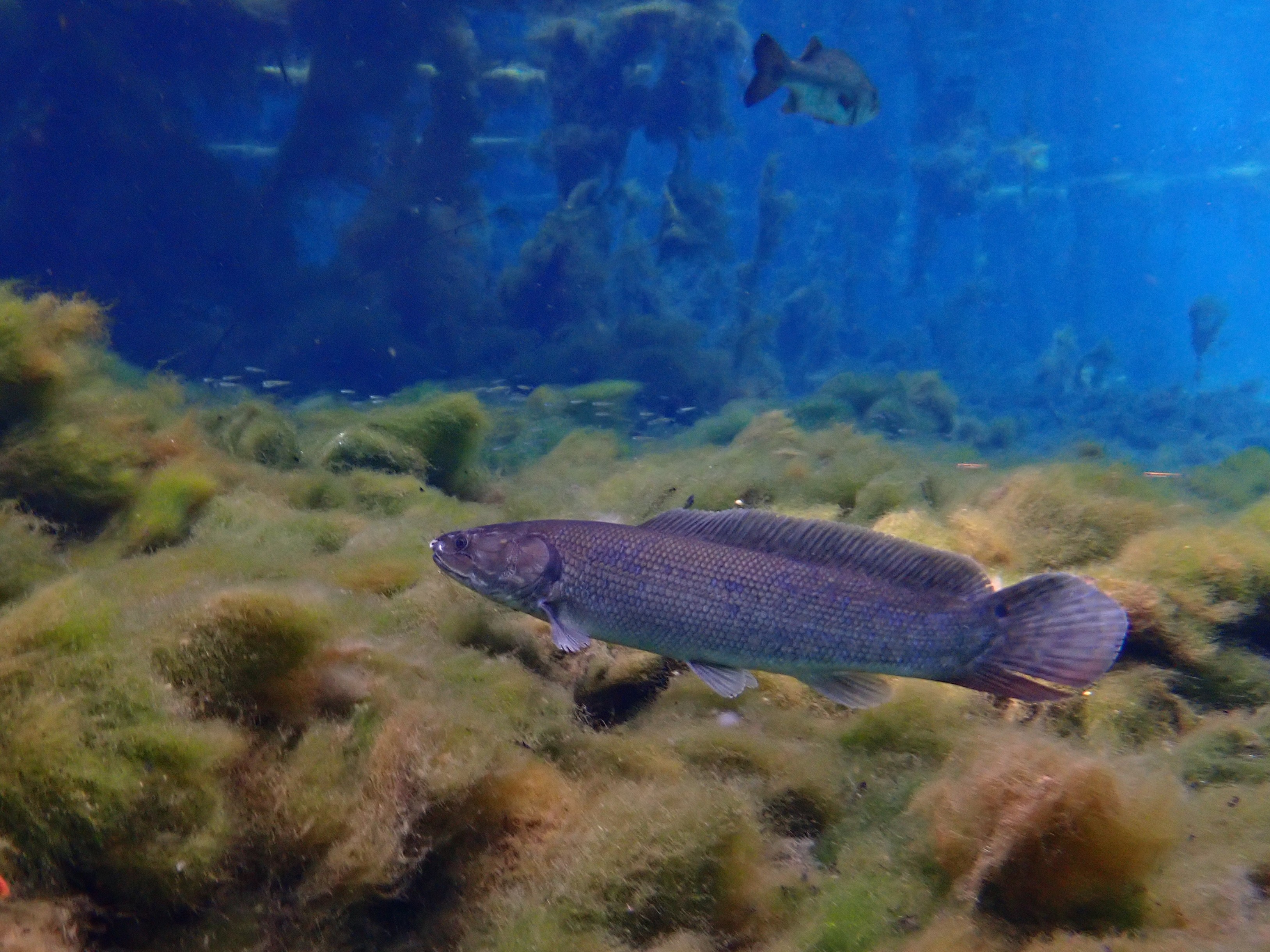 The Bowfin (Amia calva) photographed while catch-and-release angling (top 3 photos), and in the clear water of a Florida spring (bottom 3 photos).