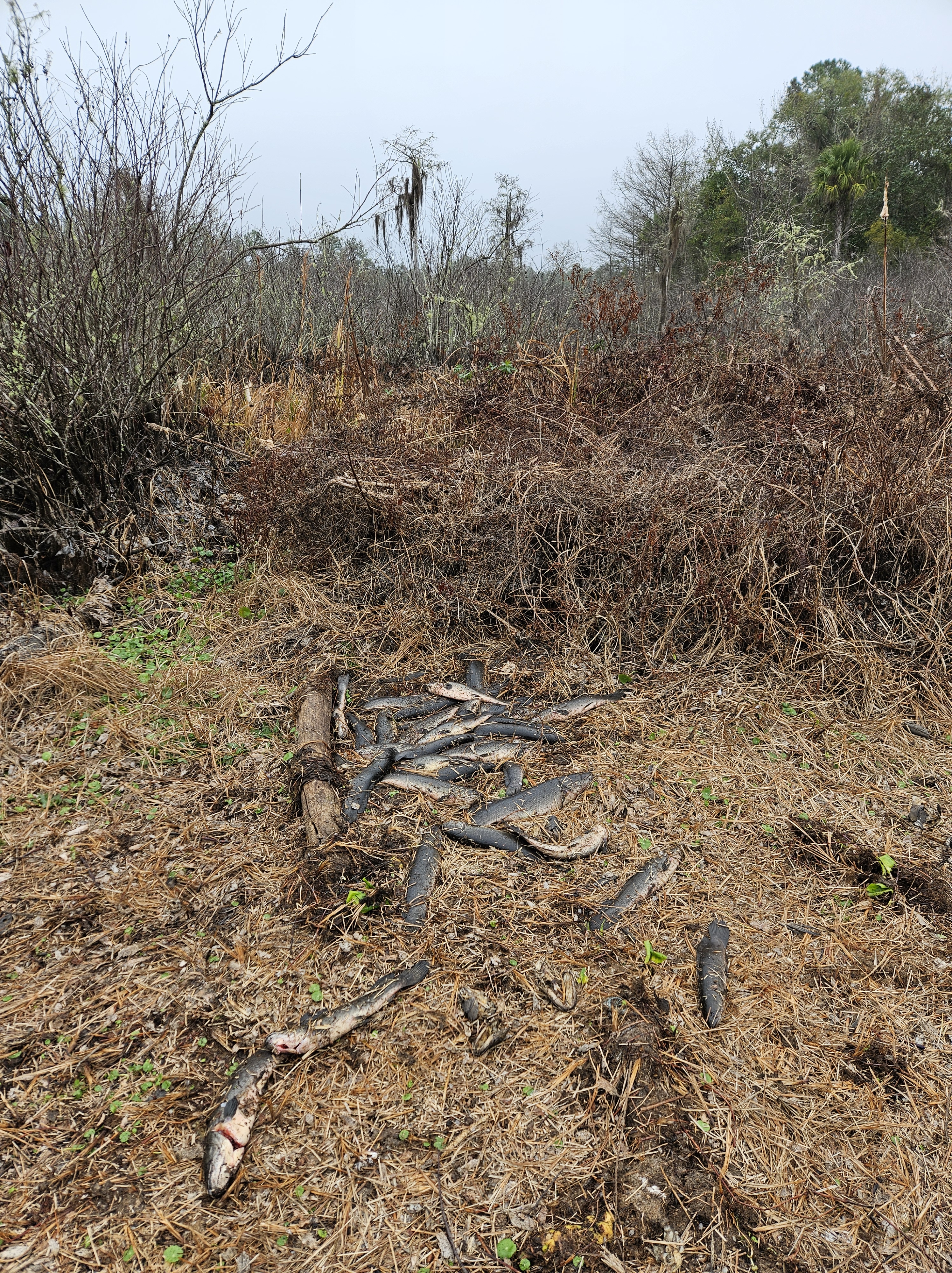 On a foggy January morning I walked a riverbank in north central Florida, with telephoto lens around my neck and fishing pole in hand. I stopped to photograph a river otter as it bobbed and weaved amongst the riparian structure, hunting for fish. Herons lining the bank occasionally squawked, protesting my presence. It was the sort of morning that makes one appreciate the Florida landscape and the wildlife it holds. But as I rounded a bend, I came upon the scene of a massacre. There was trampled vegetation, fishing litter, and the bodies of approximately 100 large Bowfin laying in heaps on the bank. I quickly pieced together what likely happened. Due to low water levels, Bowfin were congregating in a deep pool in the river. In this spot, anglers had targeted them, en masse, and left them to rot on the bank. There was not yet any foul smell or bloating suggesting they were freshly killed, likely the day prior.